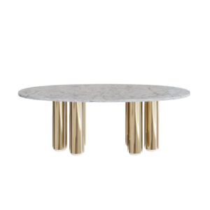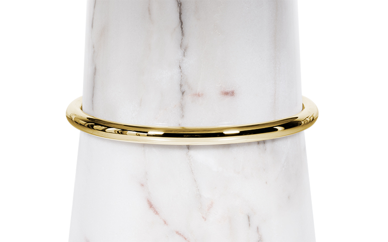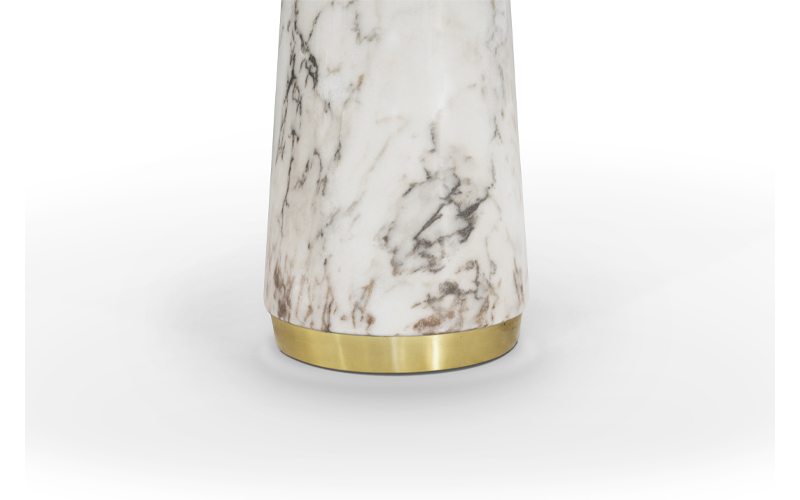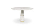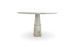 Agra is the modest setting of one of the most famous monuments in the world, the Taj Mahal, also known as the marble mausoleum. Just like it, AGRA Dining Table is an impressive display of craftsmanship and elegance. Made of Estremoz marble with polished gold details, this round marble dining table will add refined grace.