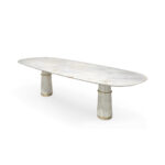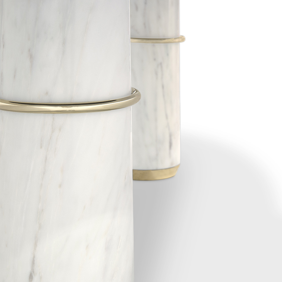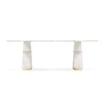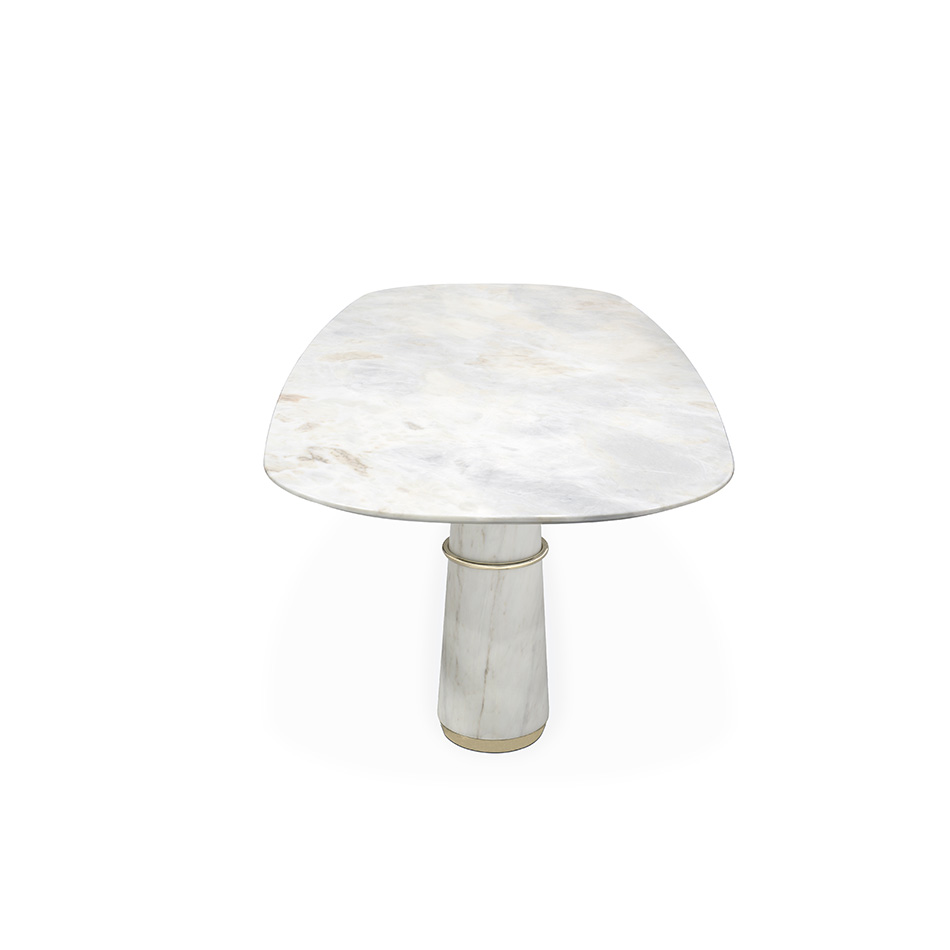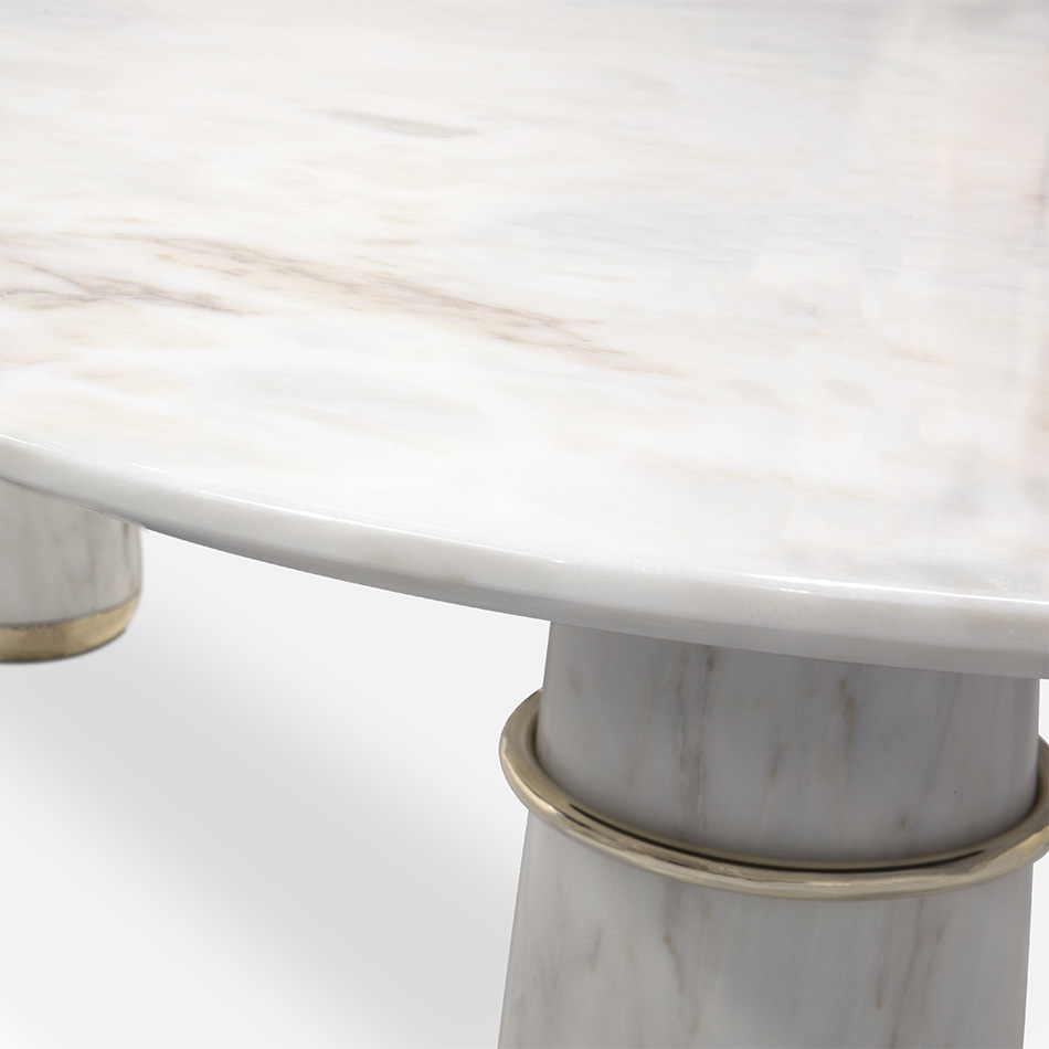 Agra is the modest setting of one the most famous and most celebrated monuments in the world, the Taj Mahal, also known as the marble mausoleum. AGRA Oval Dining Table is an impressive display of craftsmanship and elegance. Its delicate work of the robust white stone softens the imposing structure, while touches of brass reflect golden warm tones to the polished surface. The AGRA Oval Marble Dining Table is the ideal modern contemporary dining table for your dining room.