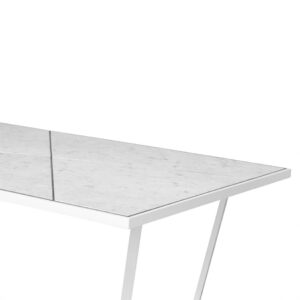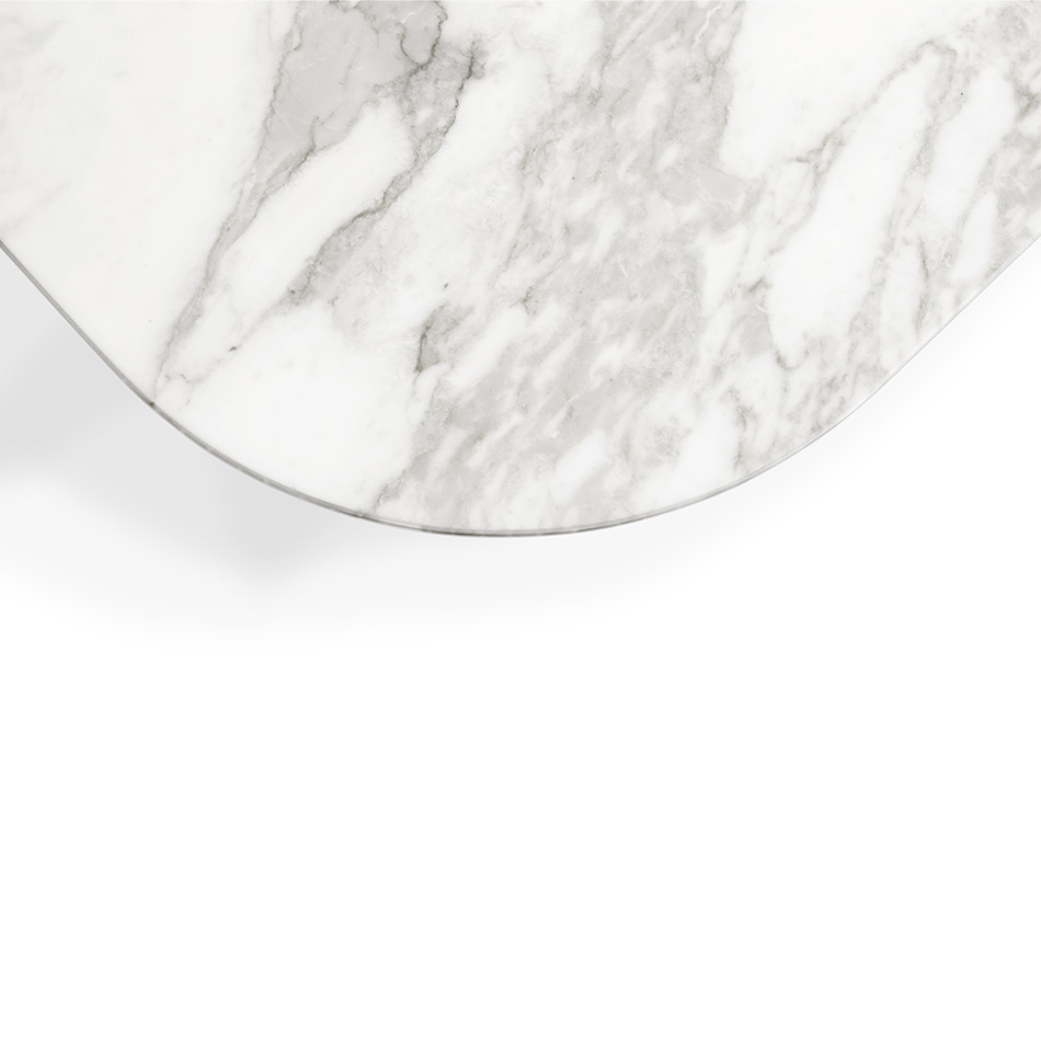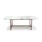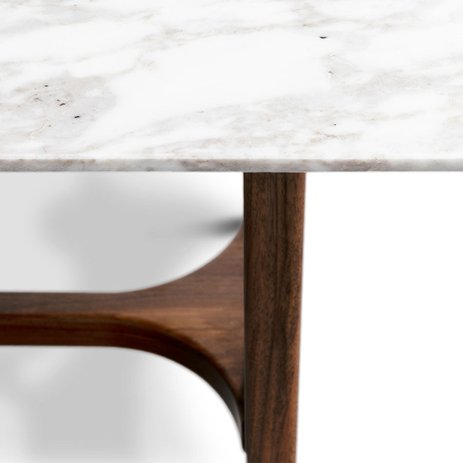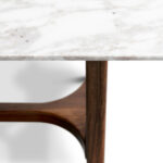 Named after the Italian cinema legend, Alberto Sordi. this dining table, reminiscent of Oscar Niemeyer’s architectural shapes, with curvilinear wooden legs that elegantly blend with the round corners of its marble top. A modernist masterpiece, fusing art and design flawlessly.