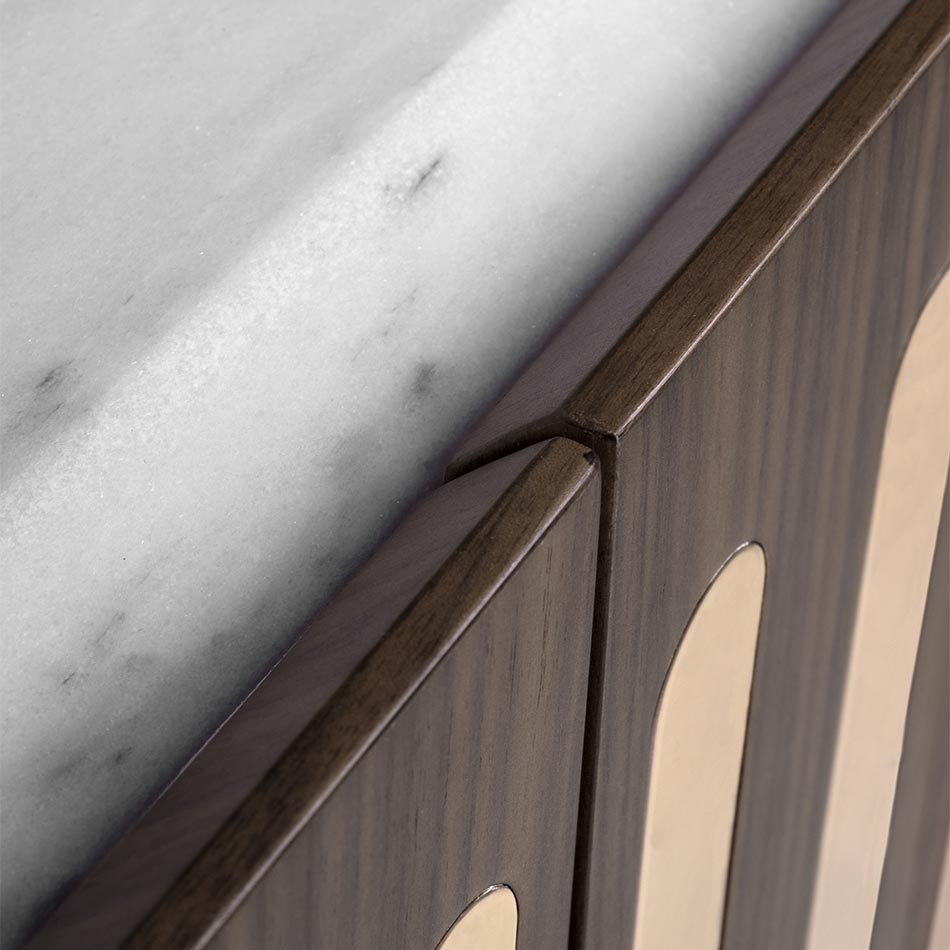 Brushed Brass , Polished Estremoz Marble , Walnut Veneer Matte |
