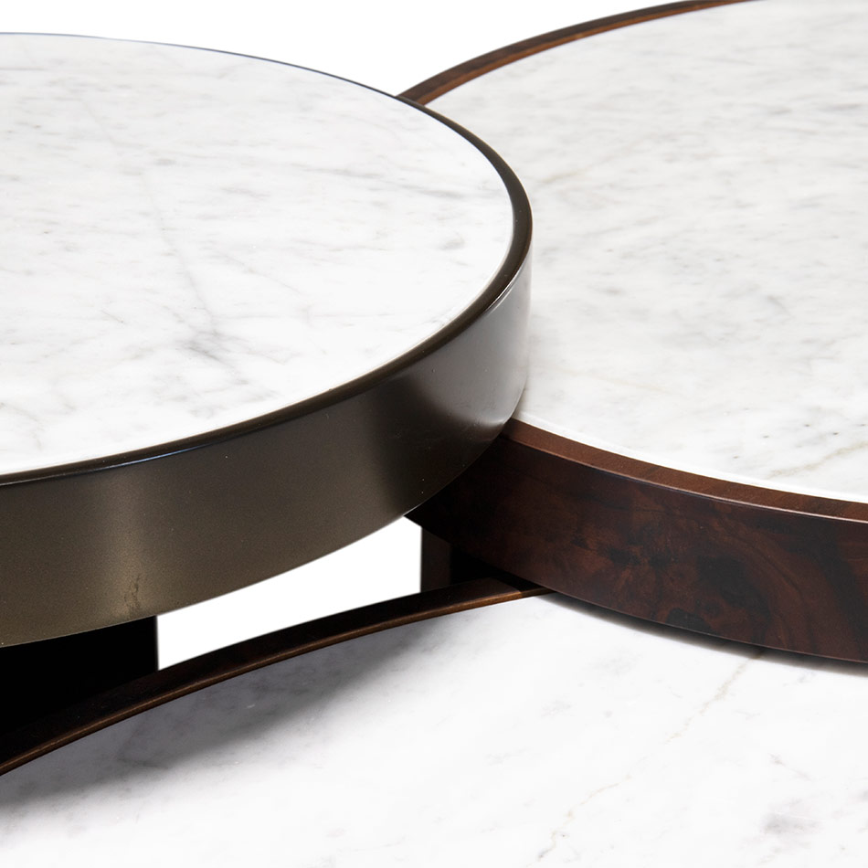Carrara Marble , Feet: Epoxy Iron Bronze , Matte Varnish , Walnut Root Matte , Wood Veneer |