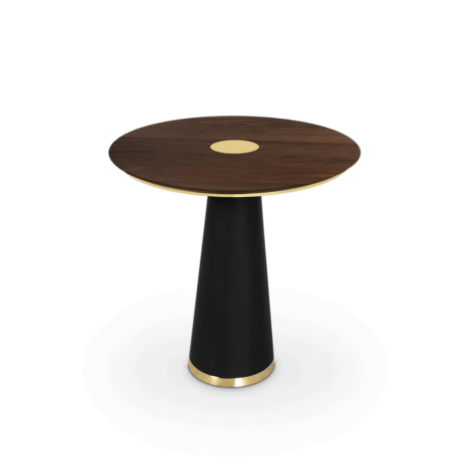Polished Brass , Black Leather , Walnut Veneer Matte |