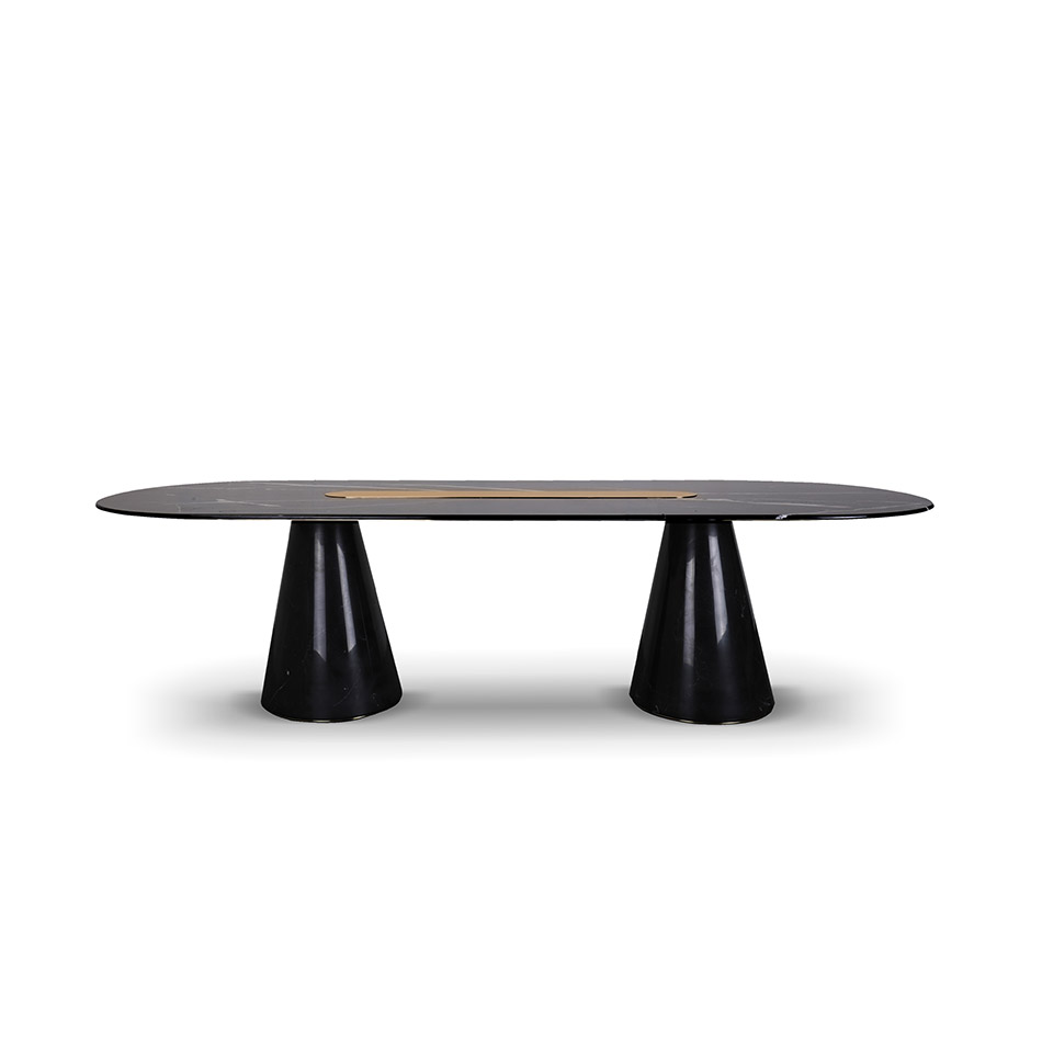 A modern dining table with capacity for 8 people, Bertoia is a majestic statement piece for any dining room. Refined solid marble, enhanced by a metal ring on the countertop. Curated trendy materials, a stunning homage to design. Perfect for your home decor, guaranteed to stun.