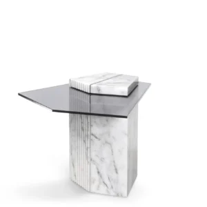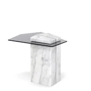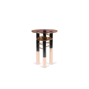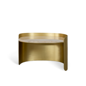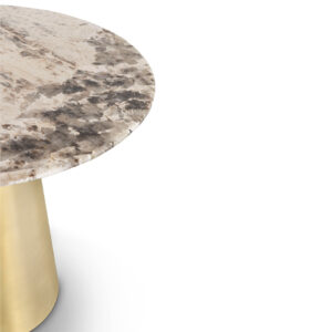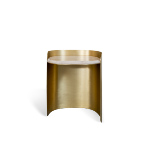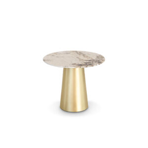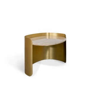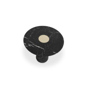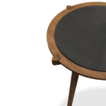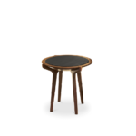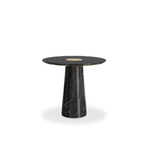 The Brando side table: a luxurious, handcrafted piece with natural elegance. Its wooden structure boasts a unique upholstered disk in luxurious fabric, supported by modern legs. The mid-century sophistication and sleek design make it versatile for Scandinavian or Mid-Century projects. An essential addition to create a modern, uncluttered ambiance.