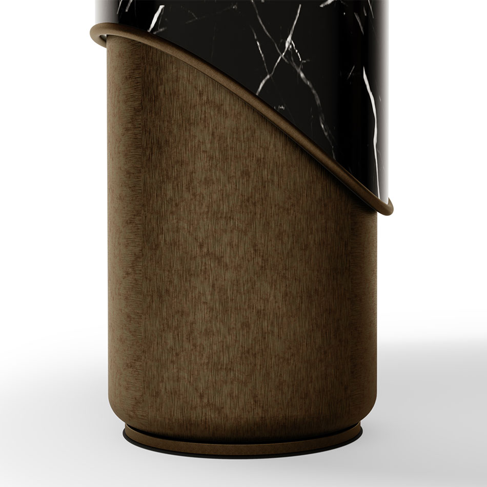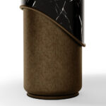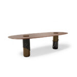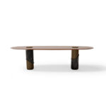 Breve is a strong coffee-based espresso drink mixed with steamed half-and-half milk. So, just like the exciting drink, this oval dining table serves the same amount of glamour and flavour to any dining setting. A bold and dramatic leg gives an appealing look to the table, by organically mixing portoro marble with a chic Brass. The sleek and crafty round walnut top serves a modern character to the table. Breve Oval Dining Table is also very versatile, where you can choose a white olimpic marble as the main finish, to provide a richer and even more glamorous look.
