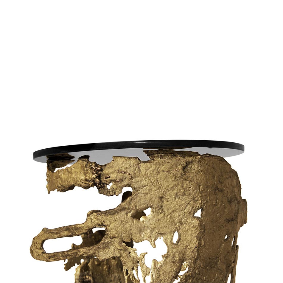 Nature in its rawest form flows through CAY Side Table as lava flows from a volcano eruption. With a tabletop in bronze glass and a base in Brass, this modern side table embodies nature’s scream. Allow yourself to hear the call, feeling its strength and reflecting it into your urban lifestyle.