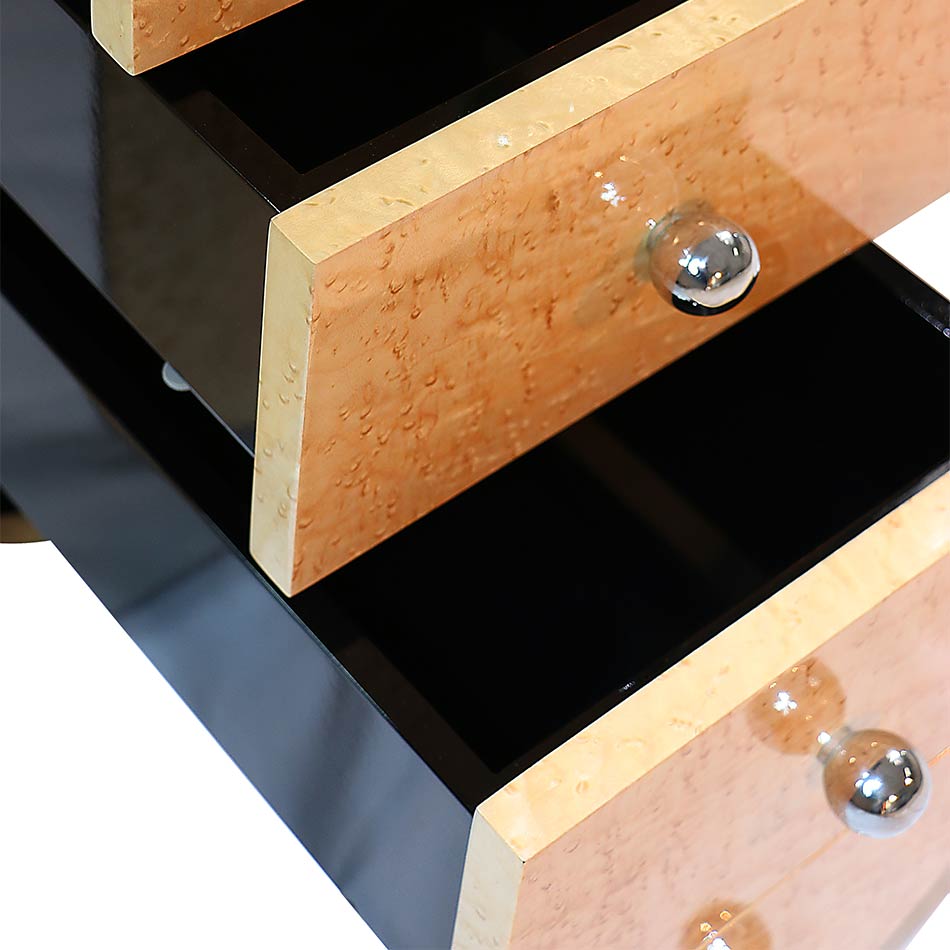 Bird's Eye Veneer Matte , Glossy Black Lacquer , Polished Stainless Steel |