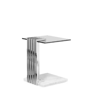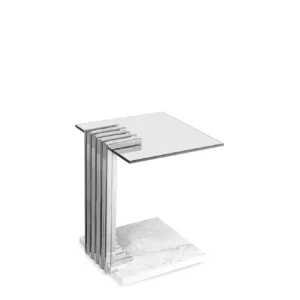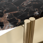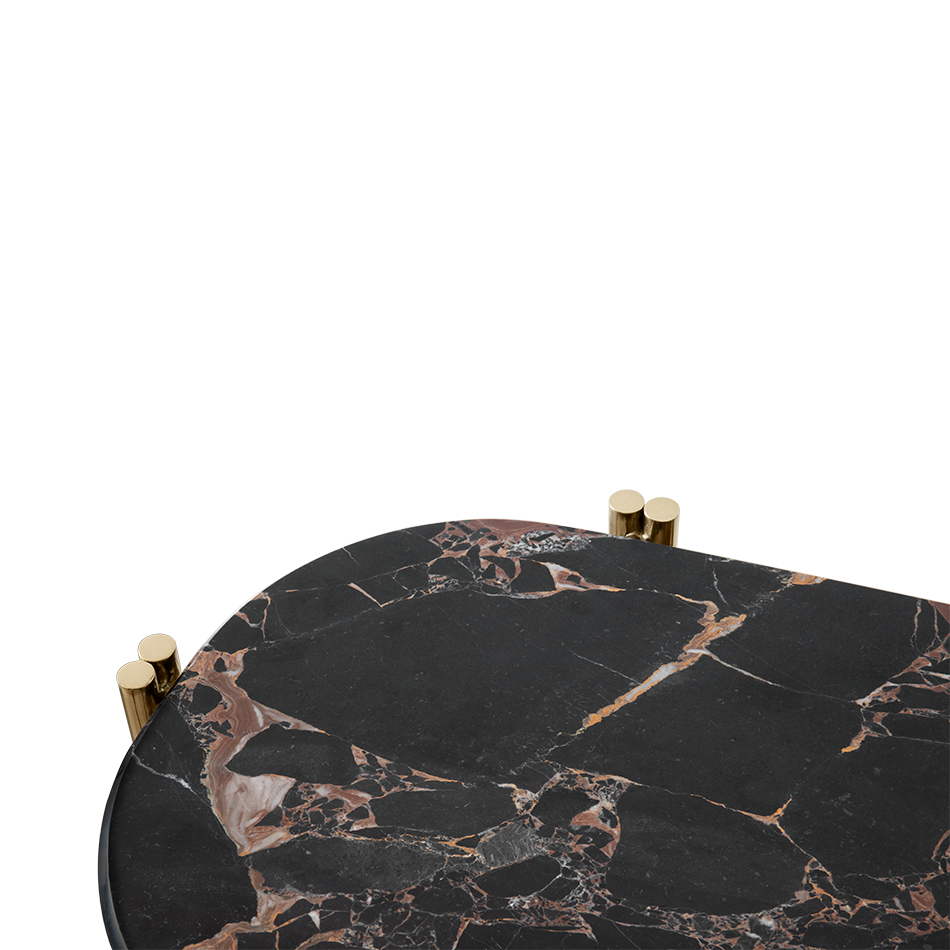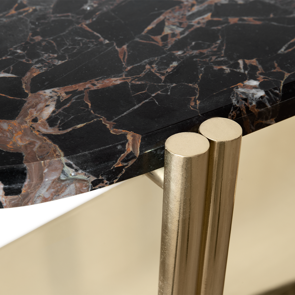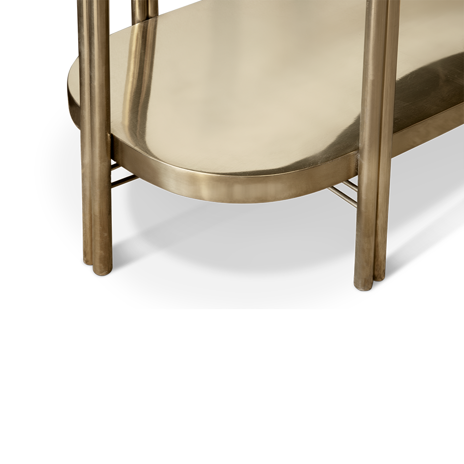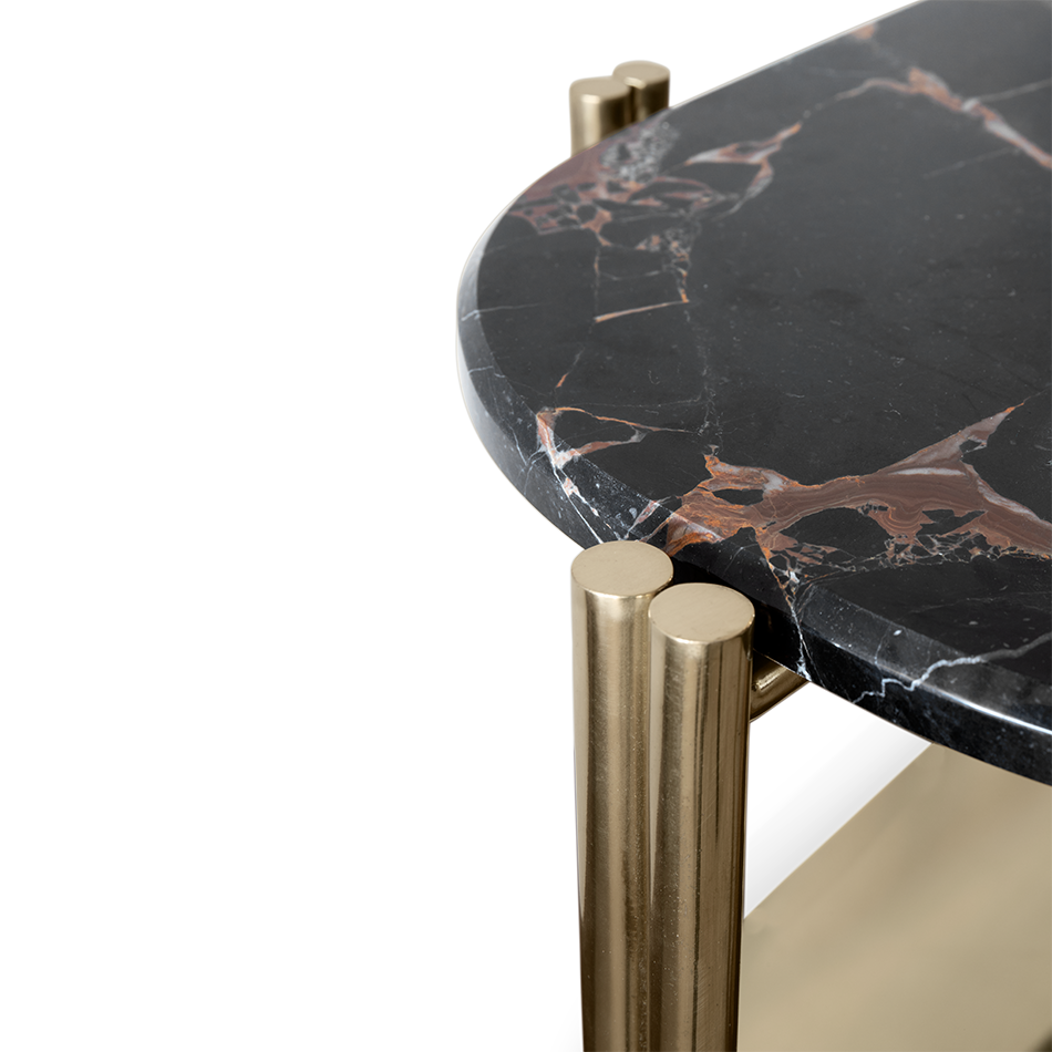 The Craig Long Side Table, an elongated version of the default design, is perfect for living rooms and entryways. It exudes uncompromised retro style and strong luxury with its metal structure and marble top. The smaller version offers a stylish solution for displaying accessories maintaining its timeless elegance.