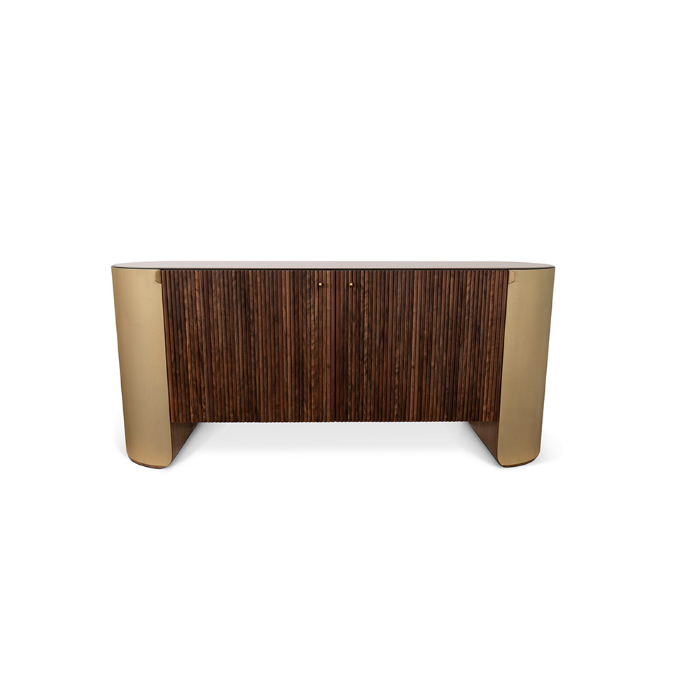 A fusion of mid-century and Italian design, he Duncan sideboard is reimagining the 60s charm in a unique manner. Curved metal structures embrace the side doors, and a wooden pattern elevates the main storage space. Crafted with high-quality materials and exquisite craftsmanship, it stands as an exceptional statement piece for modern home design.