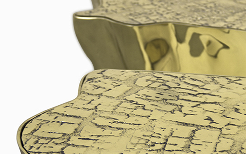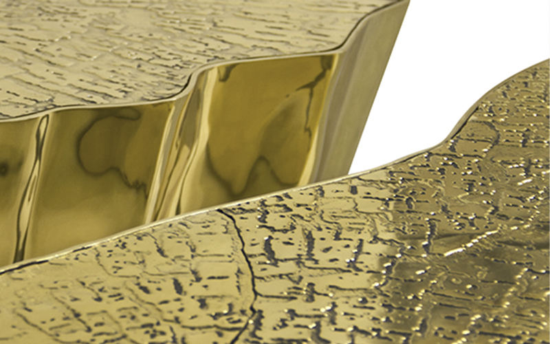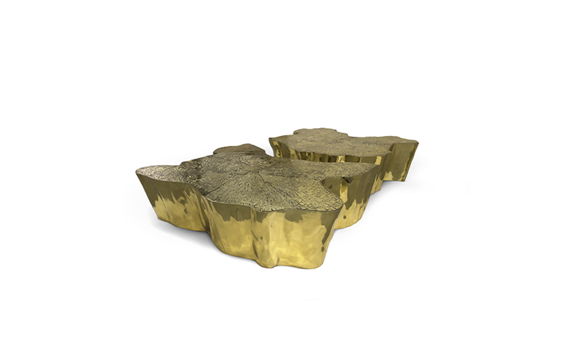 Eden is inspired by the mystic behind the name. This side table represents a part of the tree of knowledge and the tale of the birth of desire. Fully made of polished Brass, with a delicately engraved top exposing the heart of a golden tree to the very heart of a home. Available a set of two side tables and also an elegant and highly decorative modern center table.