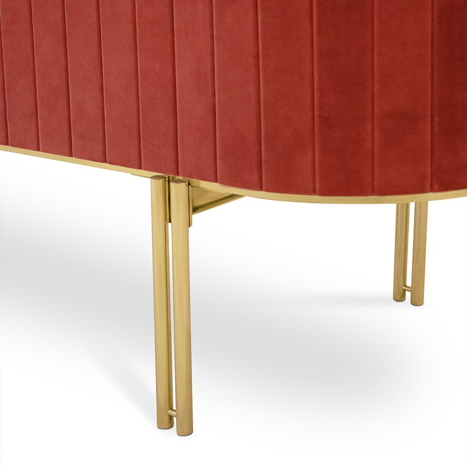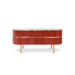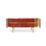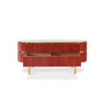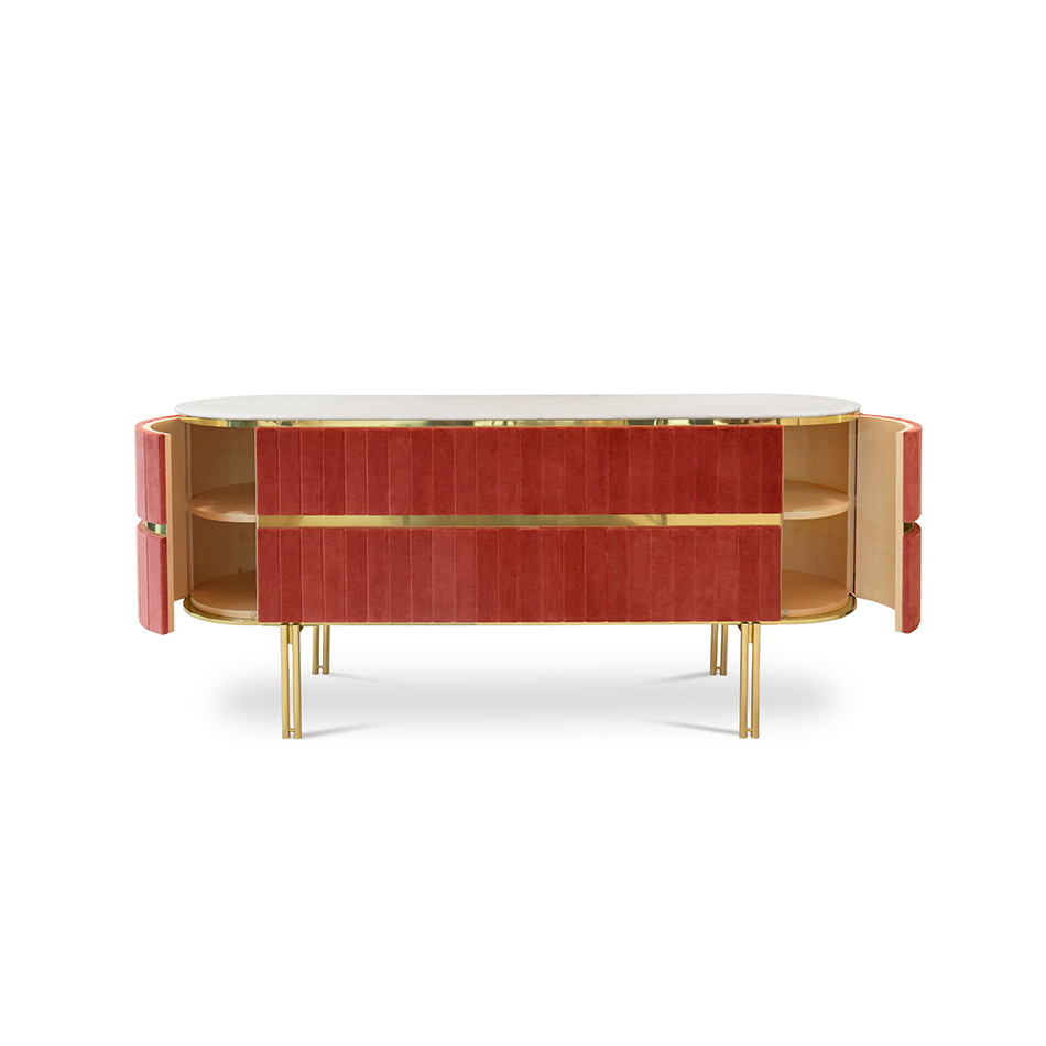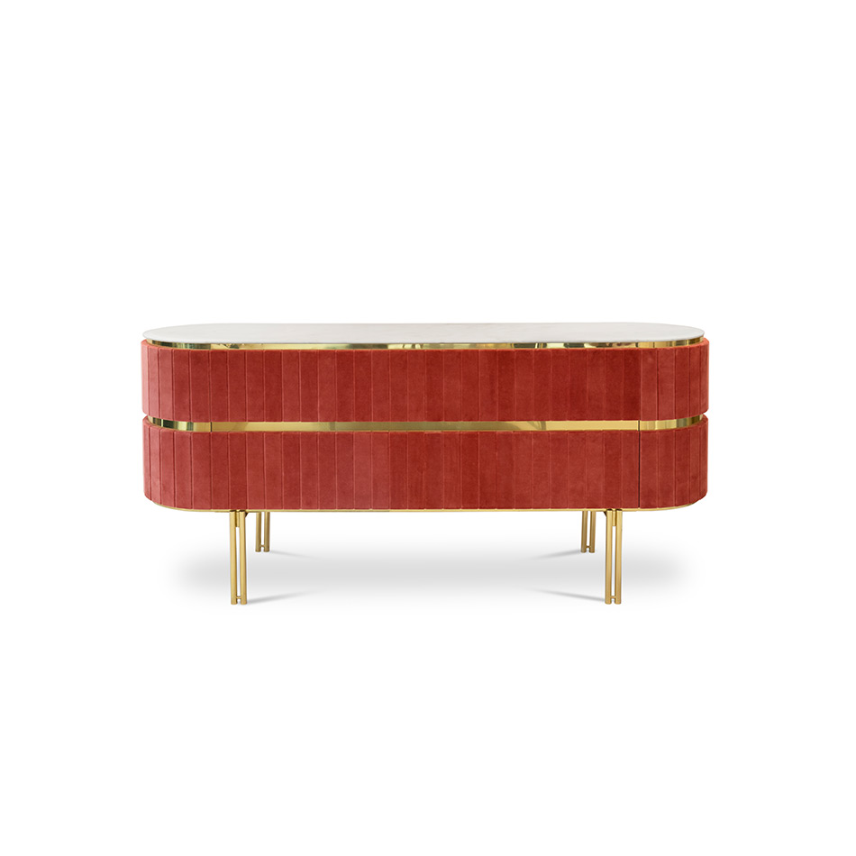 The Edith sideboard is quite a special piece from the mid-century brand’s collection. Its structure is made of solid wood, which provides more resistance, but it’s upholstered in a stunning soft fabric, standing out with a high-end marble top. For a playful and fun look in your interior, Edith is the one you should pick.