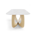 The Eero Dining table is a high-end, sleek, and minimalistic mid-century design piece that will be the crown jewel of your living room. It features clean lines, organic curves, upholstered legs and a beautifull marble top. This table is a sought-after addition to every elegant timeless modern homes.