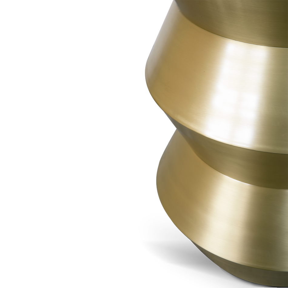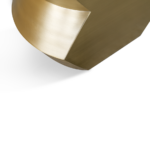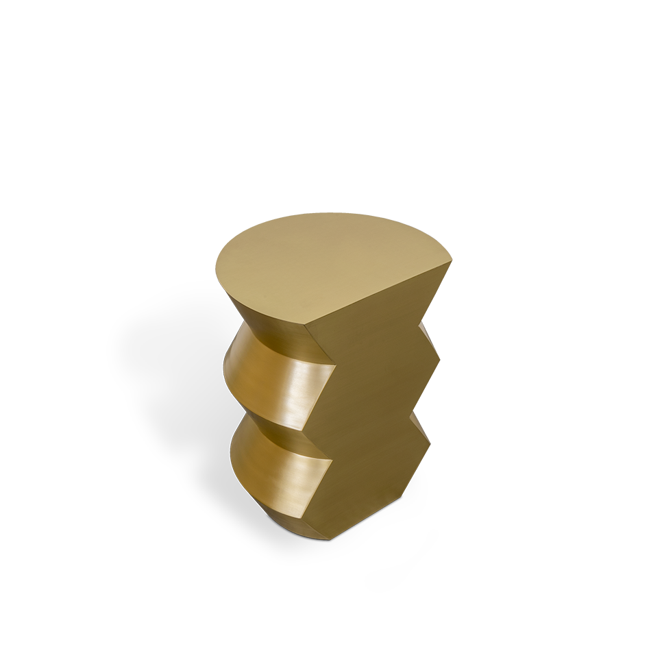 Ernest side table: a sculptural metal piece with a geometrical design and straight backline. The front part adds a unique dimension, inspired by iconic Italian design and architecture. Customize it with various metal finishes or opt for wood or stone. A versatile statement piece for your home design, reflecting sophistication and style.