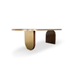 The Ezra Dining Table, a unique piece from Studiopepe’s collection, is inspired by Italian architecture. Its blend of straight and curvilinear lines breaks design boundaries. The solid wooden structure with metal details adds elegance to modern spaces, making it a captivating and versatile addition to any contemporary setting.