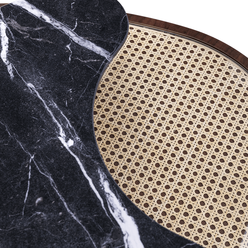 Polished Brass , Rattan , Solid Walnut Matte , Nero Marquina Marble |