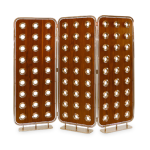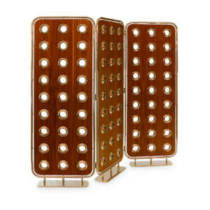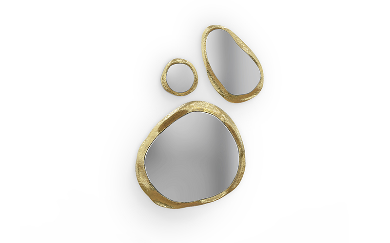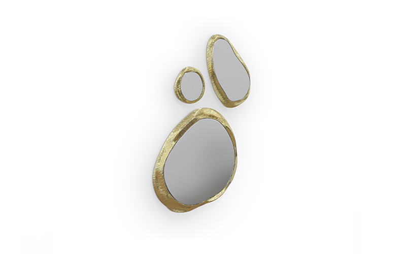 Halo is the name of a phenomenon produced by light interacting with ice crystals suspended in the atmosphere. Halos can have many forms, ranging from colored or white rings to arcs and spots in the sky. Composed by a set of three irregular-shaped mirrors, it allows different displays and creative settings. The big mirrors with different shapes have an elegant gold frame accent, perfect for contemporary interiors and elegant rooms, from stylish bedrooms to upscale halls or living rooms.