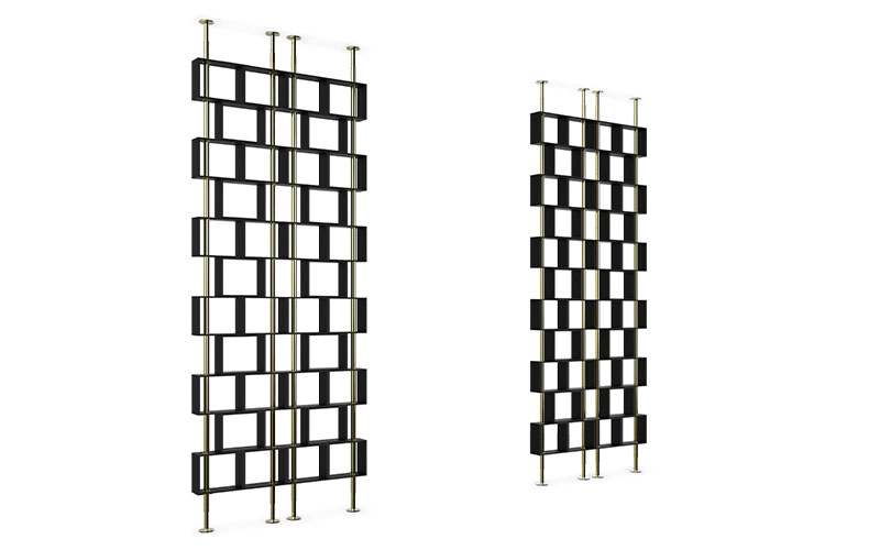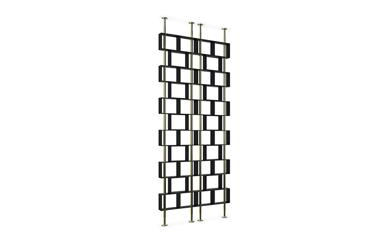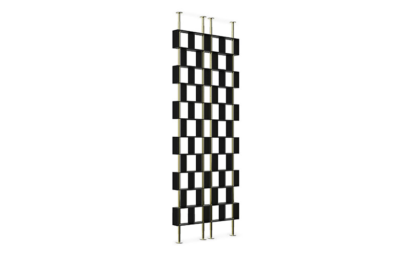 A cubic shape museum was built in Hanoi, Vietnam, to tell stories about its city and people. HANOI Screen pays tribute to these cubic forms, giving a modern feel to any interior. Made in gold plated brass and black matte lacquer, this screen room divider is sure to impress.