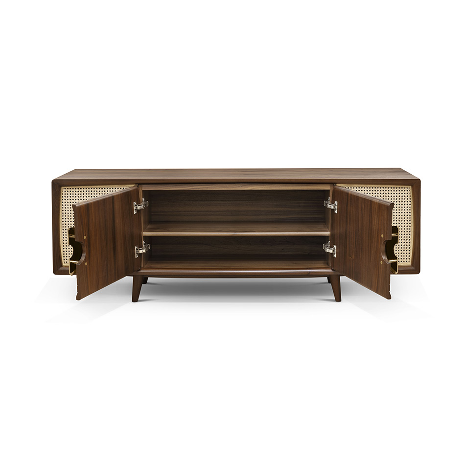 Rattan , Gold Plated Brass , Solid Walnut Matte (Front Frame Doors and Feet) , Walnut Veneer Matte |