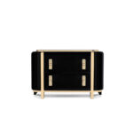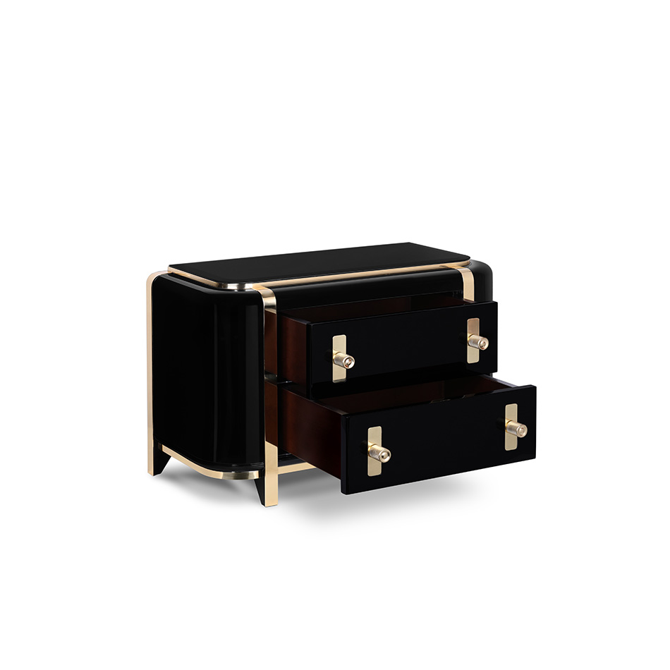 The Kahn nightstand is a stylish and luxurious piece from the Kahn collection, perfect for creating an intimate ambiance in your bedroom. It seamlessly fits your decor, and its wooden interior features a soft caramel glaze, adding a touch of elegance and beauty. This furniture piece brings the luxury of our brand right to your bedside.