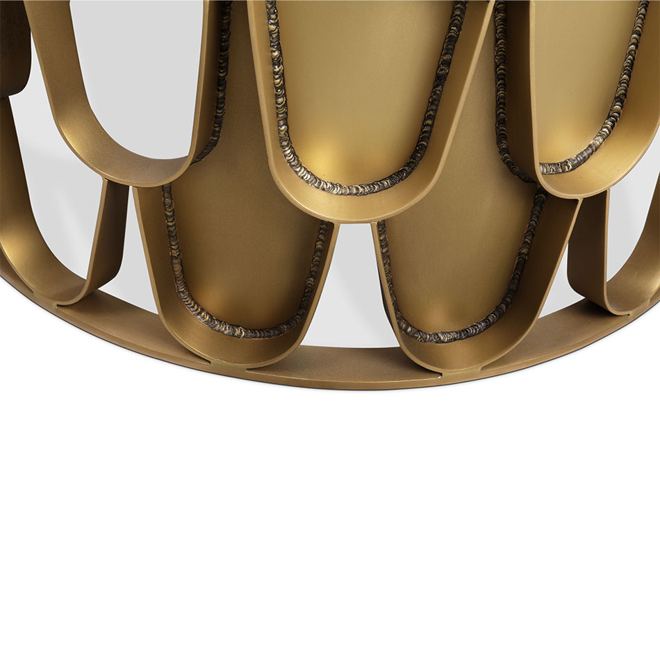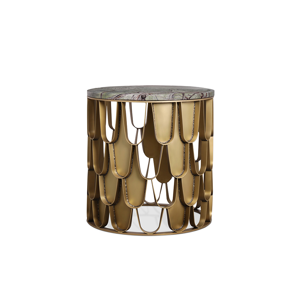 Koi Carp is a recurring symbol of Japanese culture. Its natural colour mutations reveal their capacity to adapt, just like KOI II Side Table. With a base in brass matte and a top in forest green marble, this marble round side table will add refined elegance to any modern interior design.