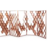 KOI carp is a recurring symbol of Japanese culture. Its natural colour mutations reveal their capacity to adapt, just like the KOI Folding Screen which fits in any modern home decor. The KOI scales from the sides of the folding screen shine and reflect the sun on its brass surface. KOI means love and affection so the carp is also a symbol of love and friendship which will be conveyed into a modern home decor.