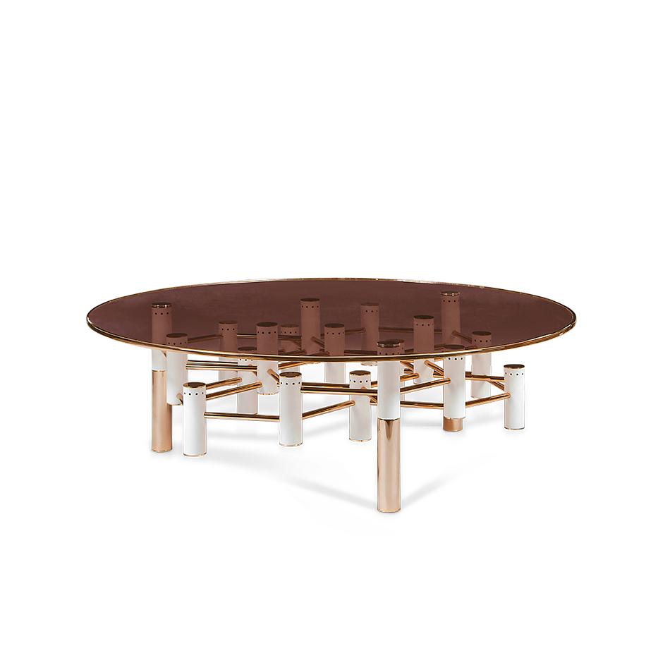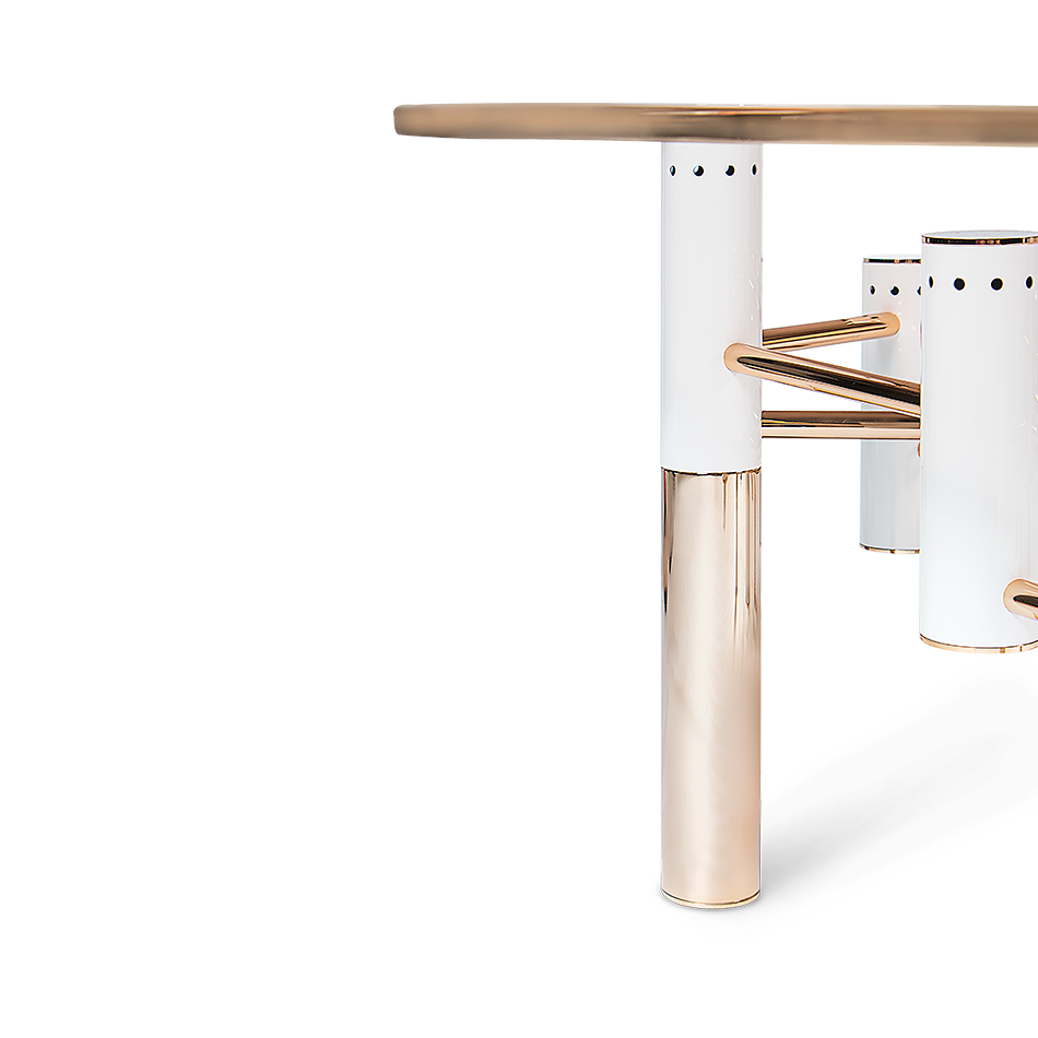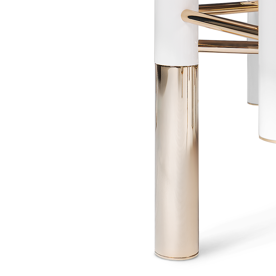 The Konstantine Center Table is the perfect companion to your project’s unique furniture selection. Featuring a structure made entirely in gold-plated brass, Konstantin also features some beautiful glossy lacquered details that can be customized to your project’s needs. All of the unique tubes are connected with a gold-plated brass net to guarantee the stability and high performance of the piece.