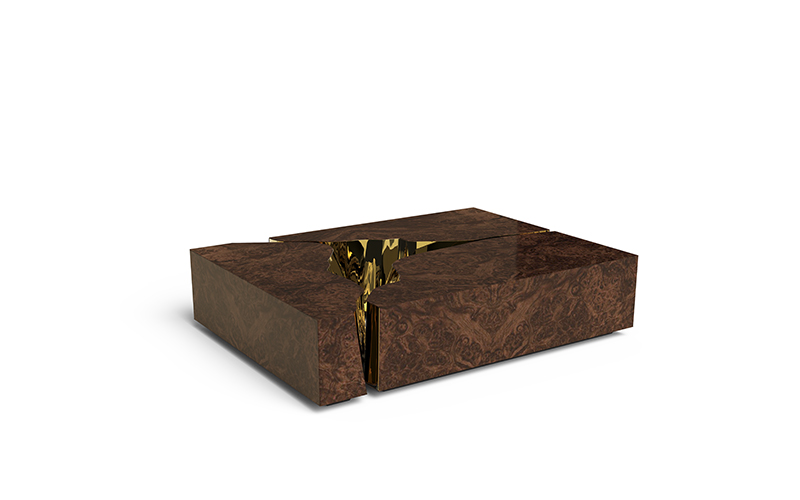 Lapiaz center table takes exceptional craftsmanship and design to a new realm. A functional artwork conceived in three modules for unexpected combinations. Its organic features are achieved through the manual fitting of the polished brass sheet, and finished by a warmth walnut veneer. The hammered brass details convey both dynamics and elegance to bring a new contemporary verve into refined interiors. Finding beauty in the most unexpected places, this contemporary coffee table is inspired by authentic karst formations created by surface dissolution, freezing, or thawing of dolomite rocks. Born from cold and freshly cracked to showing off the world rich, golden interior.