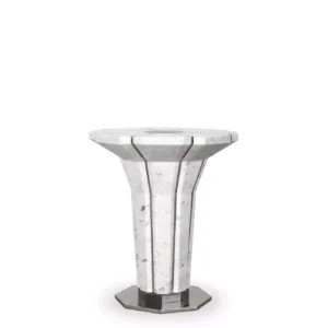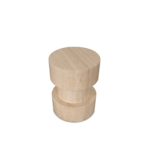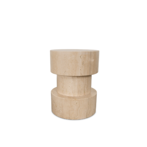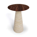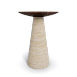 The epitome of minimalist sophistication in the realm of side tables. Standing on a sleek conical travertine base, Lotte captivates with its understated elegance. Its matte walnut top adds warmth and texture, creating a perfect balance of natural elements. Whether serving as a convenient resting place for your essentials or as a decorative accent in your living space, Lotte effortlessly blends functionality with timeless style