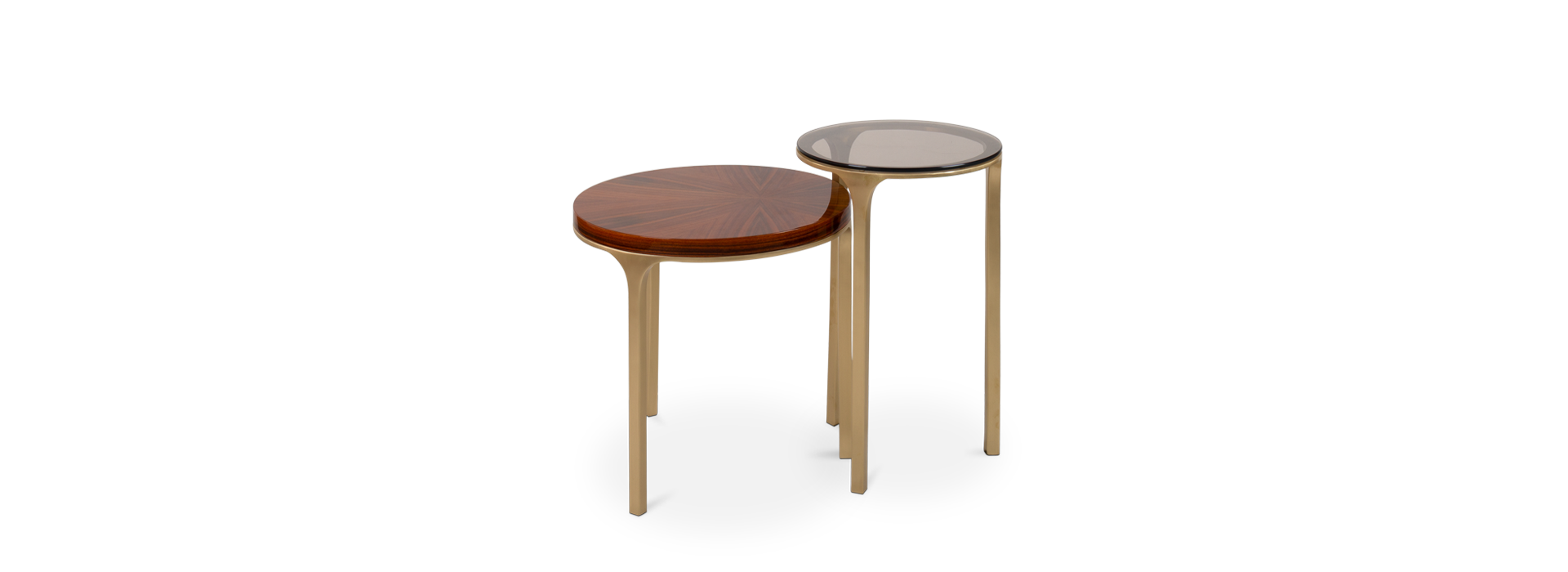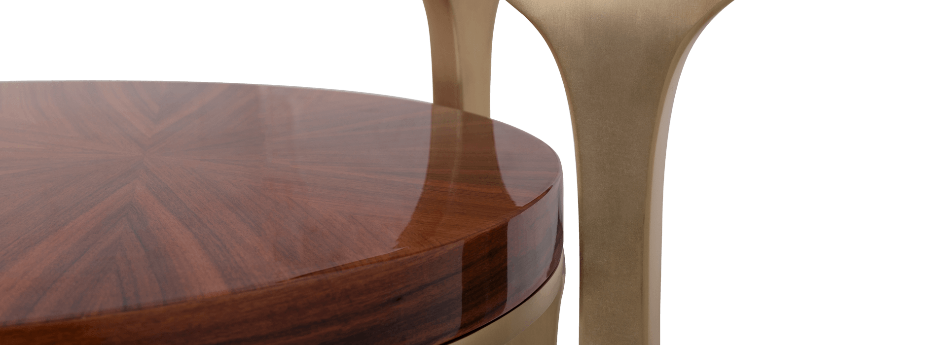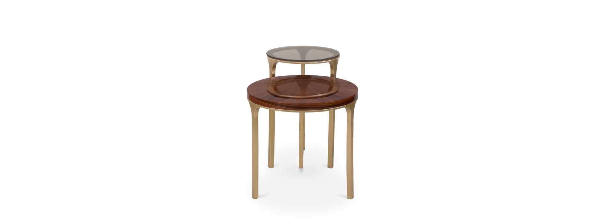 The Luray caverns in Shenandoah Valley are well-known for its unique beauty. The delicate LURAY Side Table is a tribute to the stalactites. Featuring a structure in brushed brass matte and table tops in glossy palisander veneer and bronze glass, this modern side table is sure to impress.
