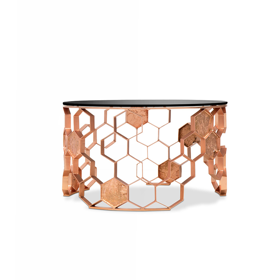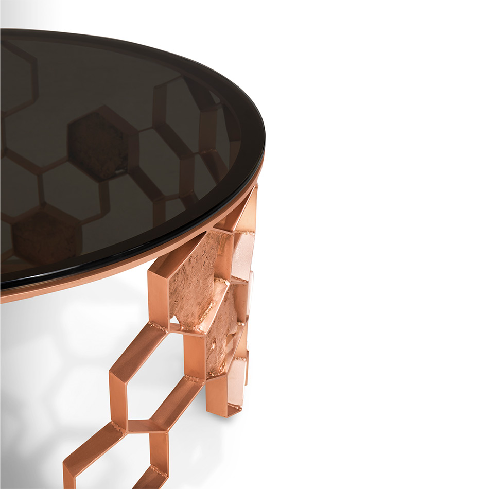 Manuka is one of the most unique and beneficial forms of honey in the world and is made from a flower that only grows in New Zealand. The MANUKA Centre Table is an exquisite furniture item that resembles a glorious beehive. The aged matte brass structure and bronze glass table top make this modern round centre table the perfect fit for a modern interior design.