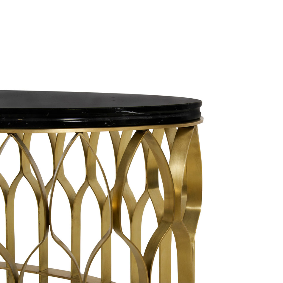 Mosques are not only places for the spiritual cult and also majestic architectural works. MECCA Oval Center Table features Brass matte columns that resemble the architectural heritage from the mosques. This oval centre table will enhance any modern interior design.
