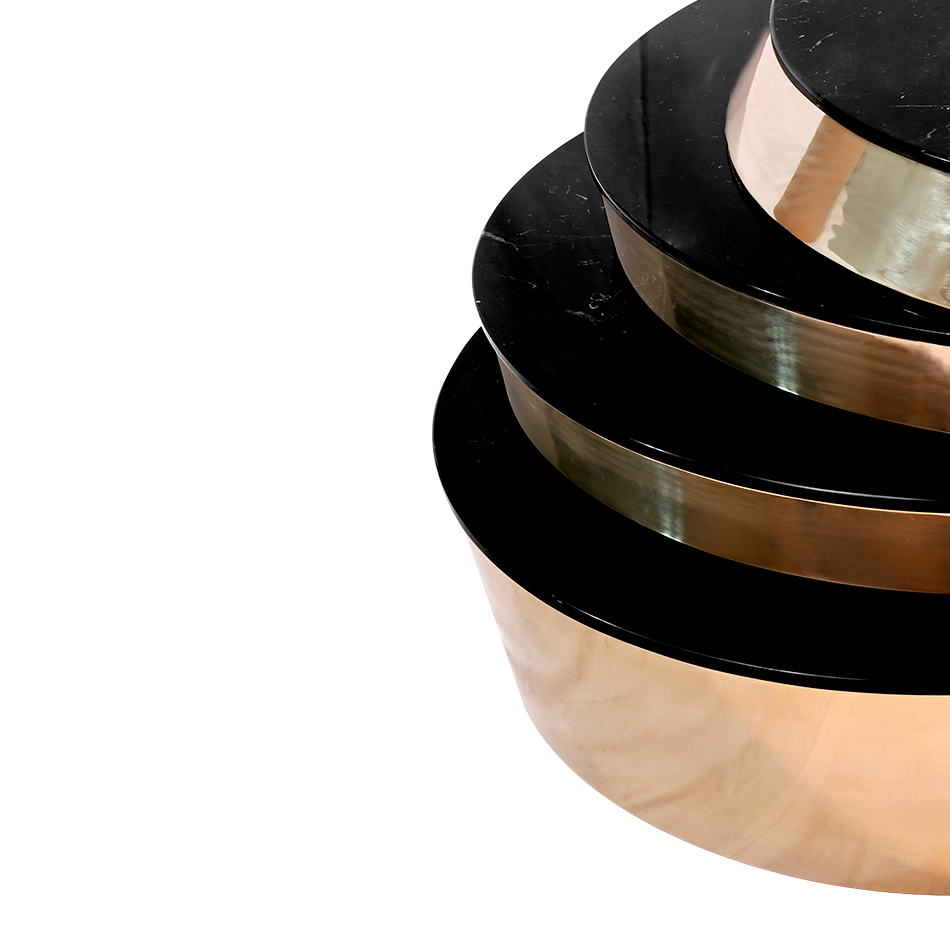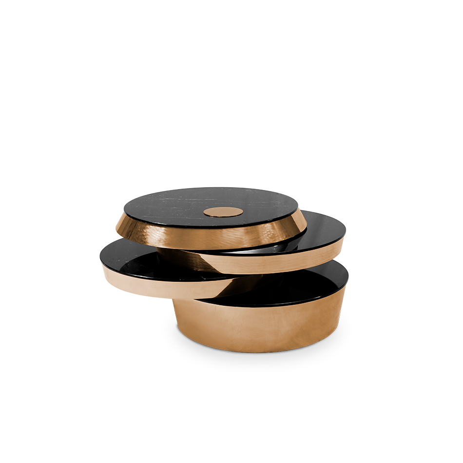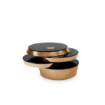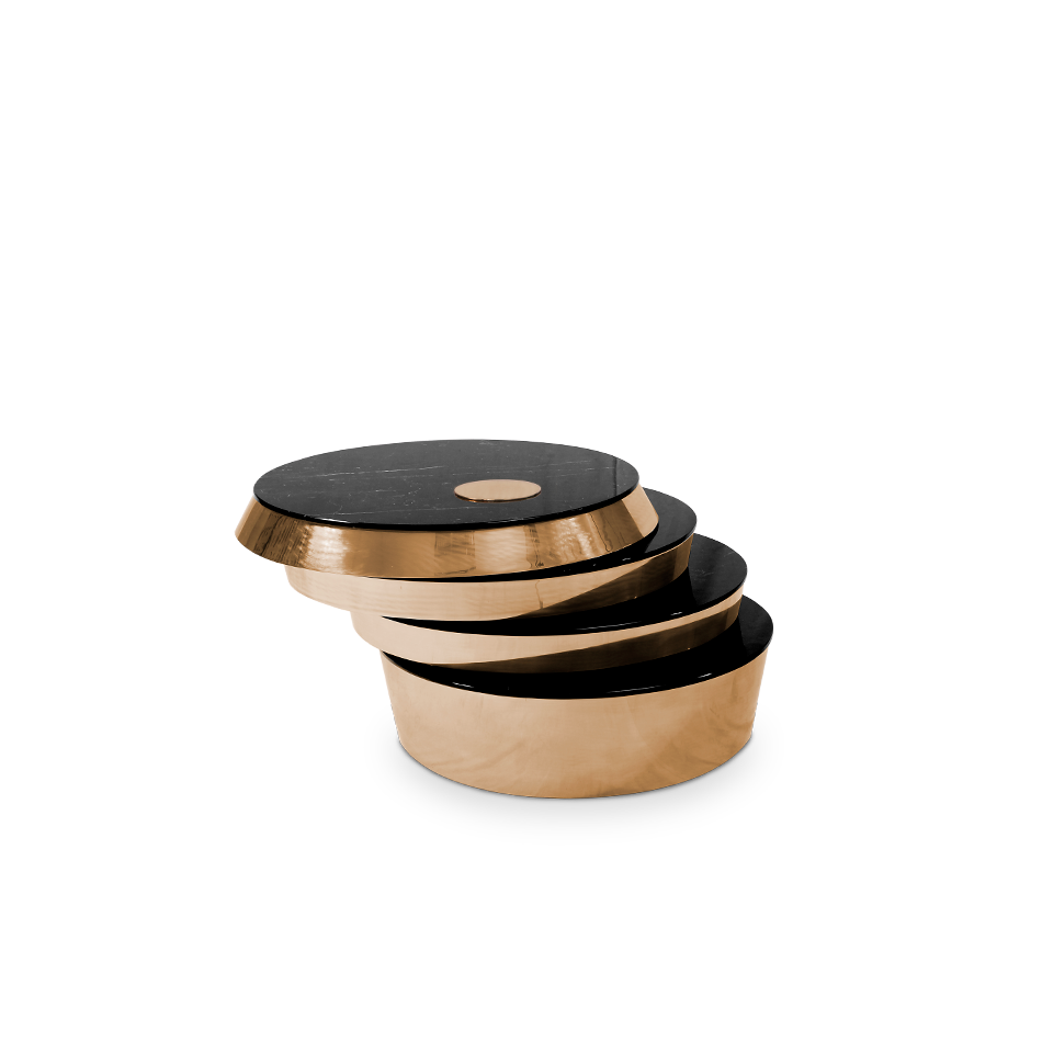 Miller is a stunning cocktail table featuring a unique mid-century modern twist that gives a sober and provocative highlight to any retro-chic interior design project. Four rotative marble disks are united by a beautiful metal tube that goes perfectly with the outside coating, it’s a creative and versatile piece for your design project.