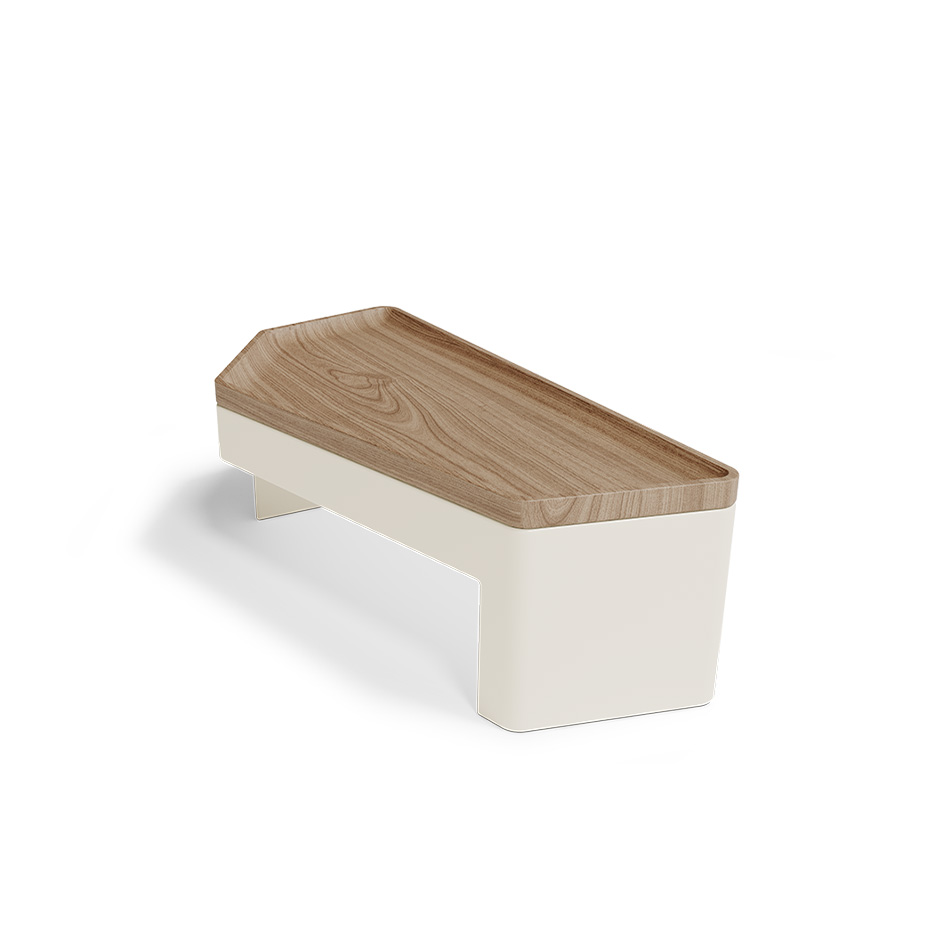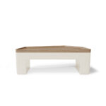 A smaller version and also a complement for the original Minas Center Table, this item still resembles the endless fields and plantations in the country. This version uses a matte light walnut top over a cream lacquered base. Its strict lines over fluid and amorphous shapes make an interesting and compelling design suitable for any aesthetic, especially when combined with its bigger version.