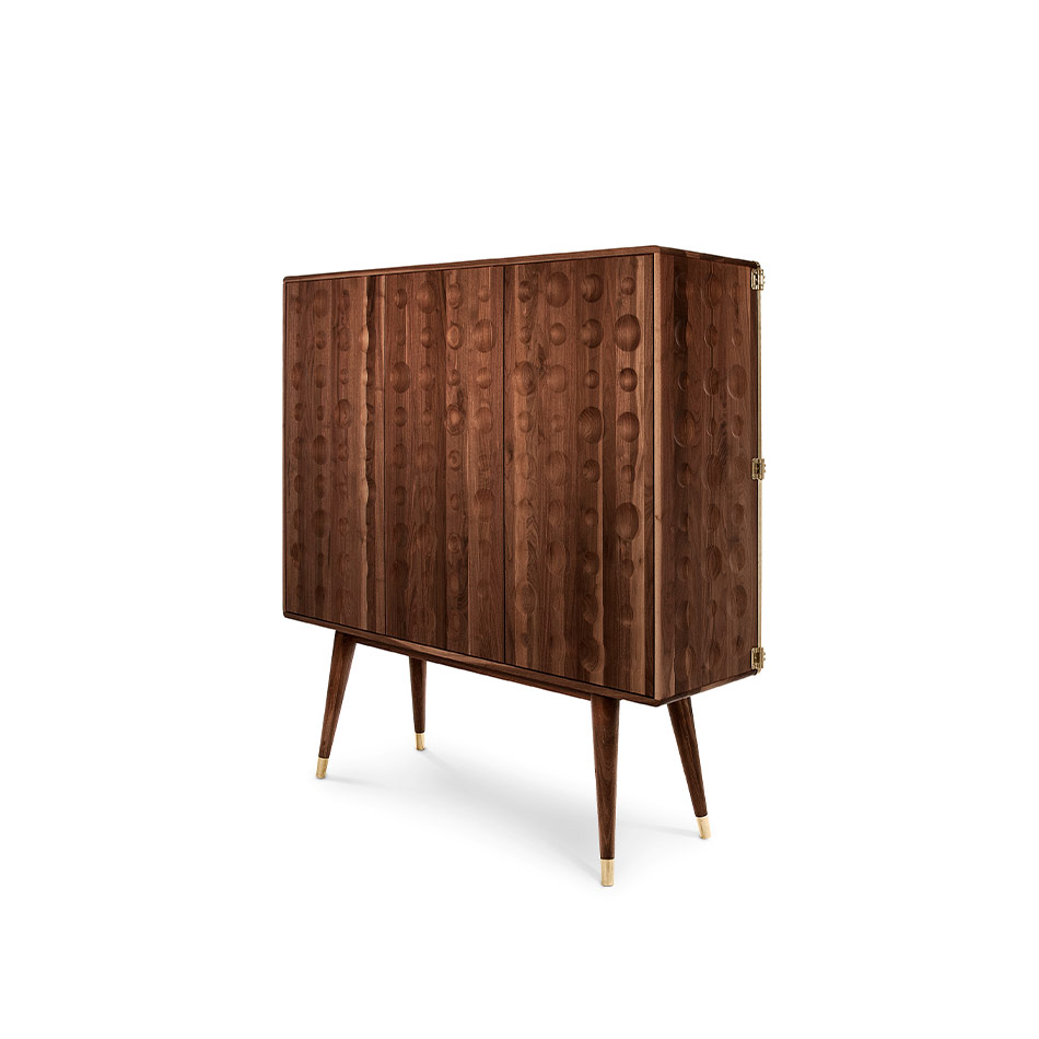 A drinks cabinet with a fresh and sleek look, Monocles Cabinet combines style and functionality. Protruding circles of different sizes at the front showing that a calculated imperfection goes a long way in design. You’ll find yourself taken back in time as soon as you look at this piece.