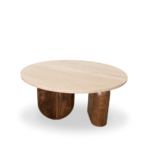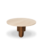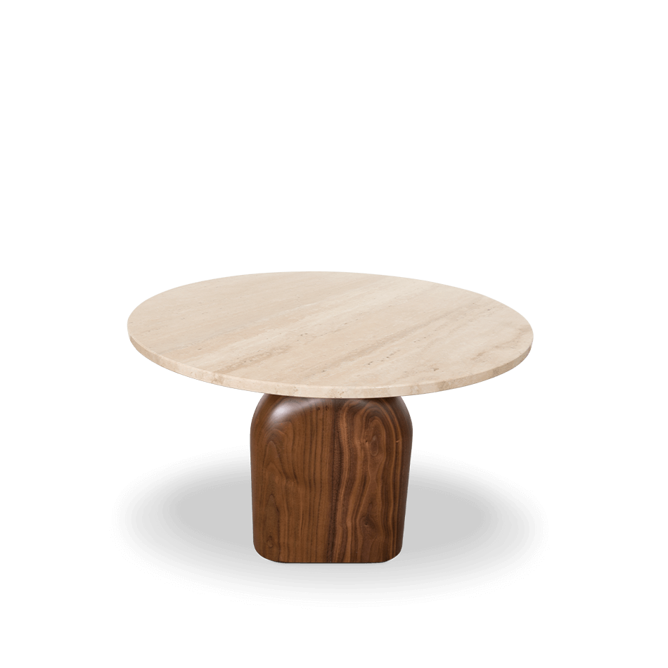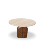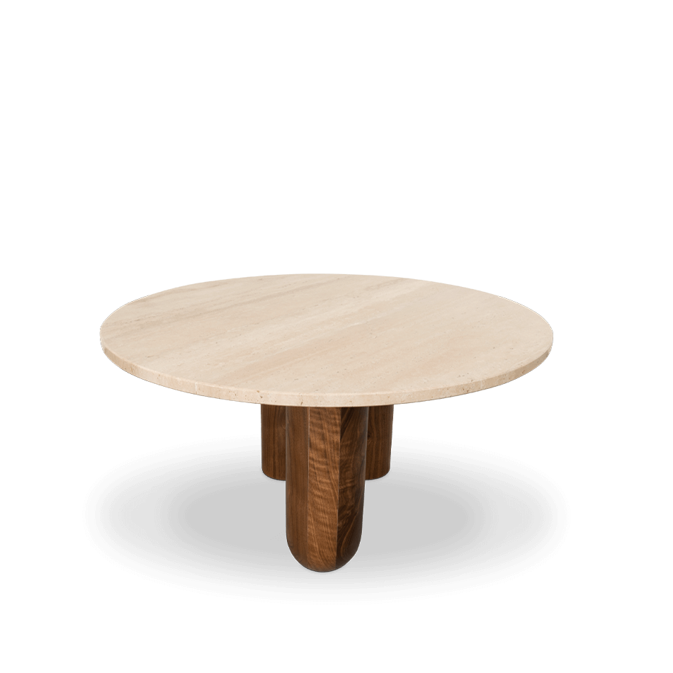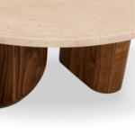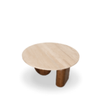 The Philip center table have a structure geometrical and entirely made out of wood and travertine stone. The soft, organic shapes of the legs support the round travertine top, highlighting the natural beauty of the high-quality materials. This piece is a combination of top design and bespoke craftsmanship.
