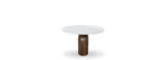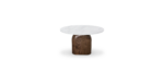 Philip Side Table is a simpler reinterpretation of the center table design, but with the same unique and inspiring flair. Its structure is also based on the geometrical round shapes, but it only features a solid base handcrafted in solid wood that supports a perfectly round table top made with travertine marble.
