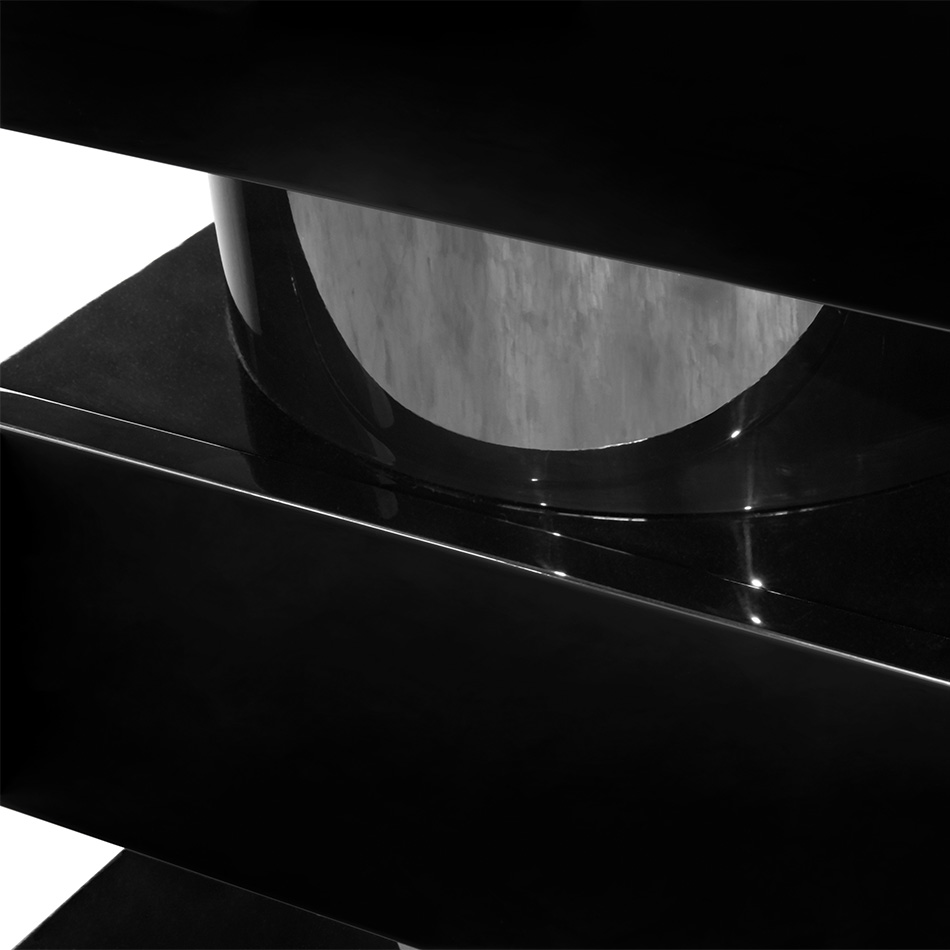 A Shinto shrine is a structure whose main purpose is to house – ‘enshrine’ – one or more ‘kami’ or gods. Its most important chamber is used for the safekeeping of sacred objects. SHINTO I Console was conceived with the same purpose: with a gloss black lacquered structure and ash wood veneer white tabletop, this hallway console table with drawers will keep safe everything you set on it. It fits any modern classic set, with a touch of elegance and sophistication.