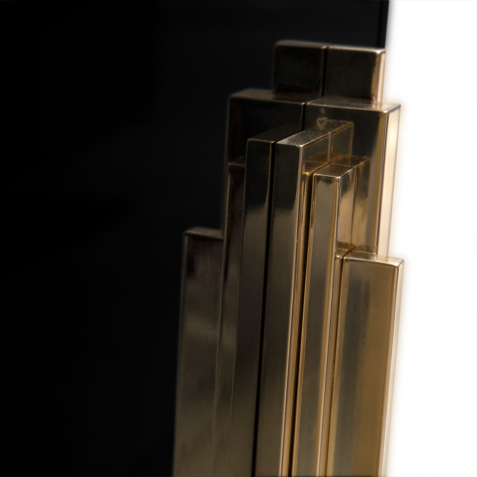 Created to be magnanimous in its appearance, the smooth and elegant shapes of this beige sideboard, highly stylish, provides a generous amount of storage space being imposing and lends an attractive presence to any room. The gold aged brass asymmetric bars give the extraordinary touch in framed of this particleboard ends with a textured surface used beige lacquer finish. A unique product for those who have a peculiar taste for new editions and conceptual designs.