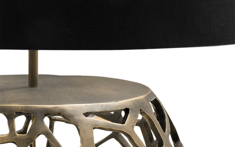 Bees, originally called “Apis” in Latin, were the main inspiration for APIS Table Lamp. This modern table light features a brass cast base with a matte aged finish and the lampshade is in black lined fabric. APIS Table Lamp promises to enlighten every interior with its soothing light.