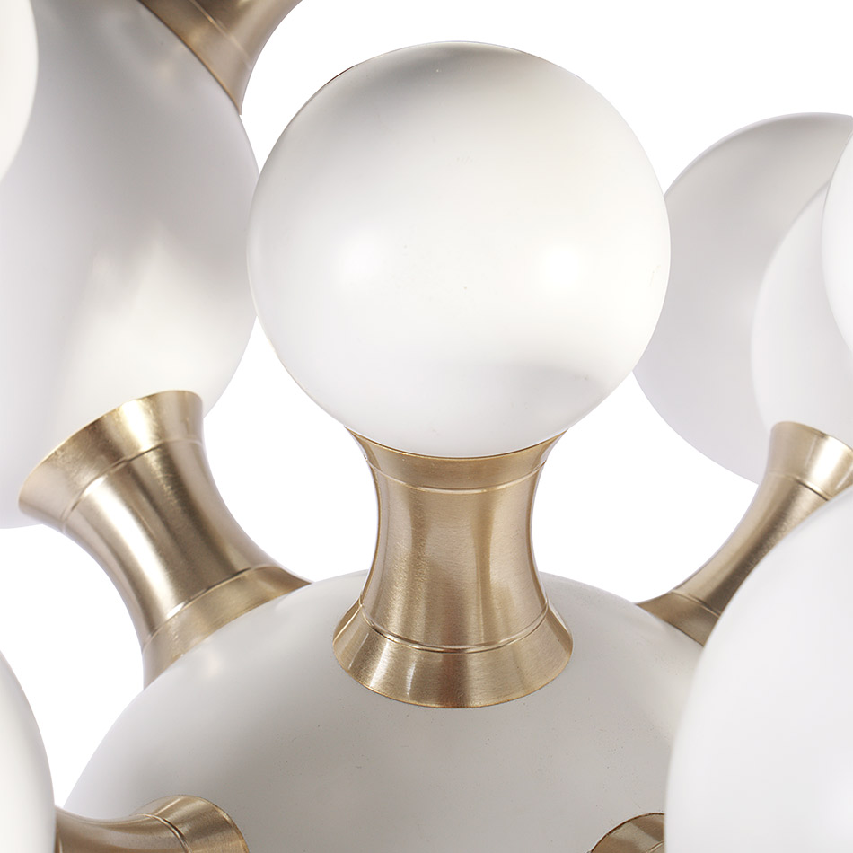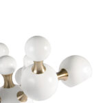 A modern interpretation of the atomic age, Atomic mid-century desk lamp was inspired by the molecular composition of the atom. With a body handmade in brass and steel, this large table lamp features a set of 4 round spotlights all arranged in an abstract organic composition. Weighing in at almost 20 pounds, Atomic table light has several gold-plated elements that turn it into a sophisticated option perfect for a modern home office, or a contemporary living room.