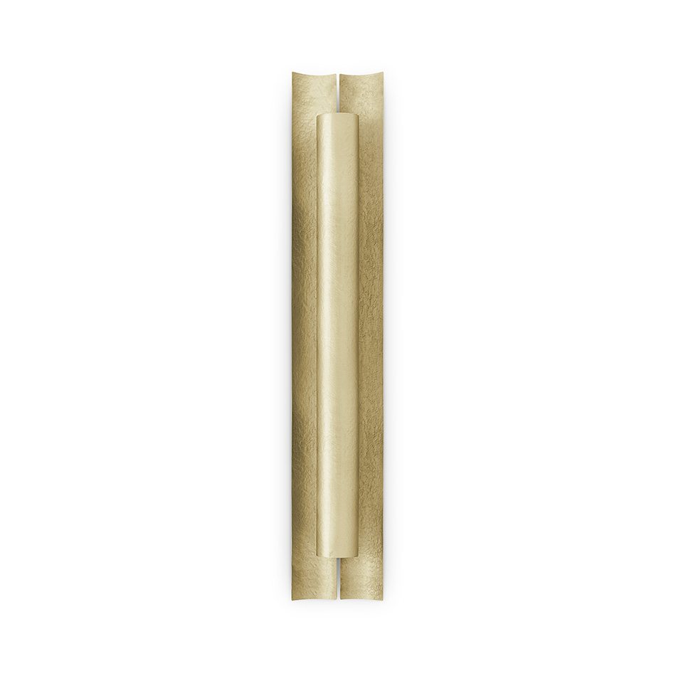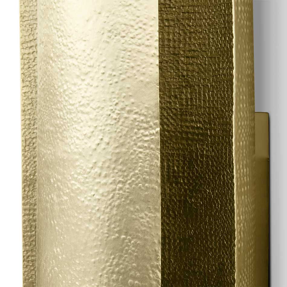 Aurum is the Latin word for gold. This imposing metal is also named a contemporary lighting item made of matte hammered brass in a long wall light option. With a unique design, AURUM XL Wall Light will bring comfort in the darkest nights with its warm yet sensitive light. This contemporary wall light is part of the AURUM Lighting Collection that includes also another wall light and suspension light in different shapes and sizes.