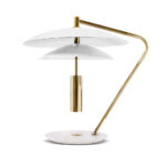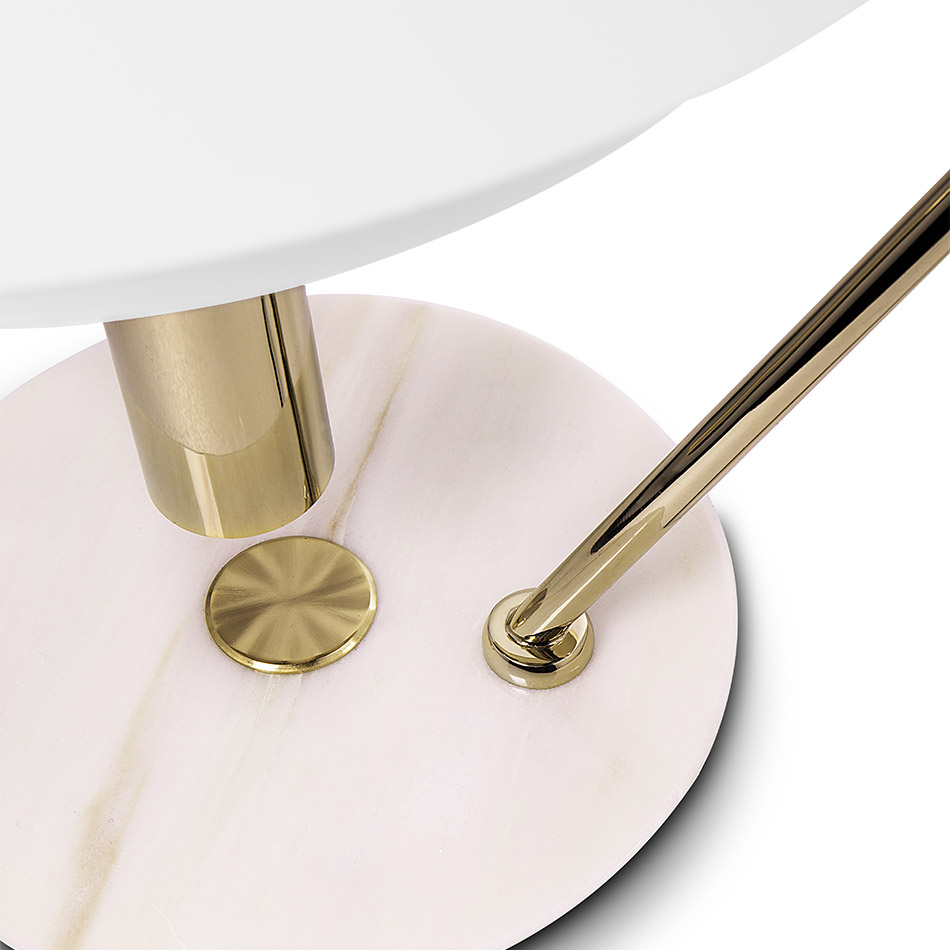 Base: Estremoz Marble , Body: Gold Plated , Shade: Glossy White Lacquer |