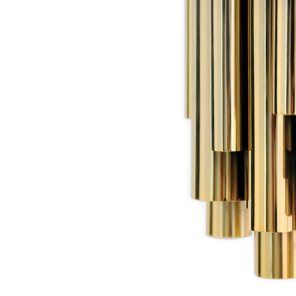 Luxury and art deco are synonym with this Brubeck wall sconce lighting design. Inspired by the timeless musical instrument that is the pipe organ and one of the foremost exponents of jazz, Dave Brubeck, this luxurious wall sconce is a statement piece on its own. For a finishing touch, it boasts a very art deco gold-plated finish. This modern wall sconce to light up your home, making it the perfect candidate for a maximalist dining room, or even an entryway decor project.