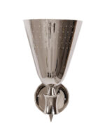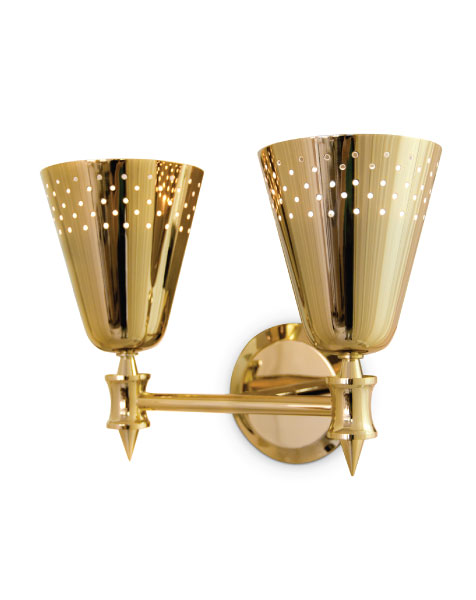 Charles is a modern vanity light designed by DelightFULL and inspired by the mid-century lighting classics. A simple lighting design, Charles is handmade in brass and aluminum by some of the finest artisans in Portugal. The mount is made of brass, with a nickel plated finish, while the shades have minimalist perforation details and also feature a nickel plated and a matte white finish. It is a mid-century wall sconce that creates a stunning visual effect, having the possibility of being used with one or two diffusers. The perfect wall lamp shade for a Scandinavian style bedroom, or a contemporary bathroom.