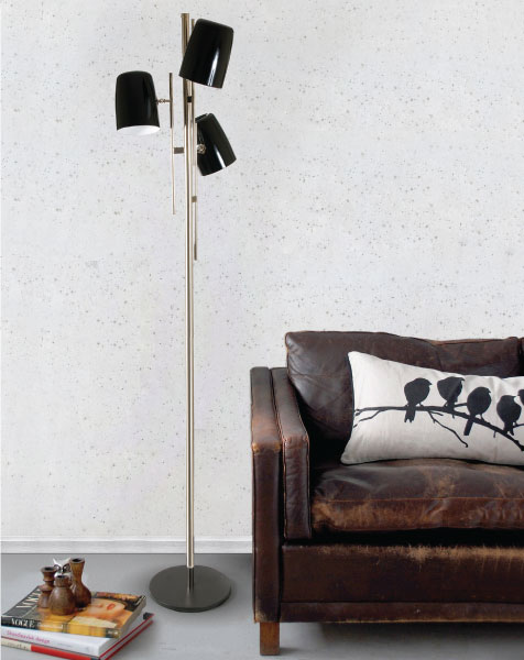 Cole is a retro-inspired floor lamp that has a three-shade design with a glossy black exterior and a matte white interior finishing. The three-cone shades provide plenty of styles as well as flexible lighting. Therefore, these manageable heads Cole ensure maximum lighting, depth and add functionality to every single clean and modern design. With three asymmetrical arms, Cole floor light has a balanced elegance and presence that won’t go unnoticed. This mid-century modern lamp provides brilliant light for any vintage industrial office or living space.