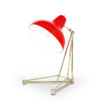 Diana is a vintage table lamp inspired by some of the greatest design classics of the mid-century era. It is a handmade lamp built with materials such as brass and aluminum. Brass was used on the body, whilst aluminum was chosen for the shade. The aluminum shade is lacquered a glossy red on the outside and matte white on the inside, while for the body a nickel-plated finish was chosen. However, both these colors and finishes can be customized according to your needs. This small lamp is easily the perfect reading light, having a movable and adjustable shade, that casts light to where it is needed. It best fits more minimalist or industrial environments. The perfect study table lamp.
