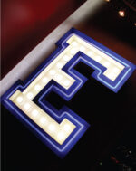 Enthusiastic the letter E calls for the dazzled feeling of a neon party. With 23 bulbs, the college styled font carries with it the blue neon outline that completes any modern home decor. Fun, exquisite and bright, the letter E will bring you all the nostalgia from the college years. With a height of 1 meter, it is ideal for clubs and display showcases. Colour customizable, this marquee letter has 105 x 74 x 20 cm and 39.5 x 29.1 x 7.9 in and can be placed on the floor or on a wall.
