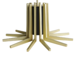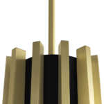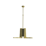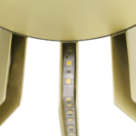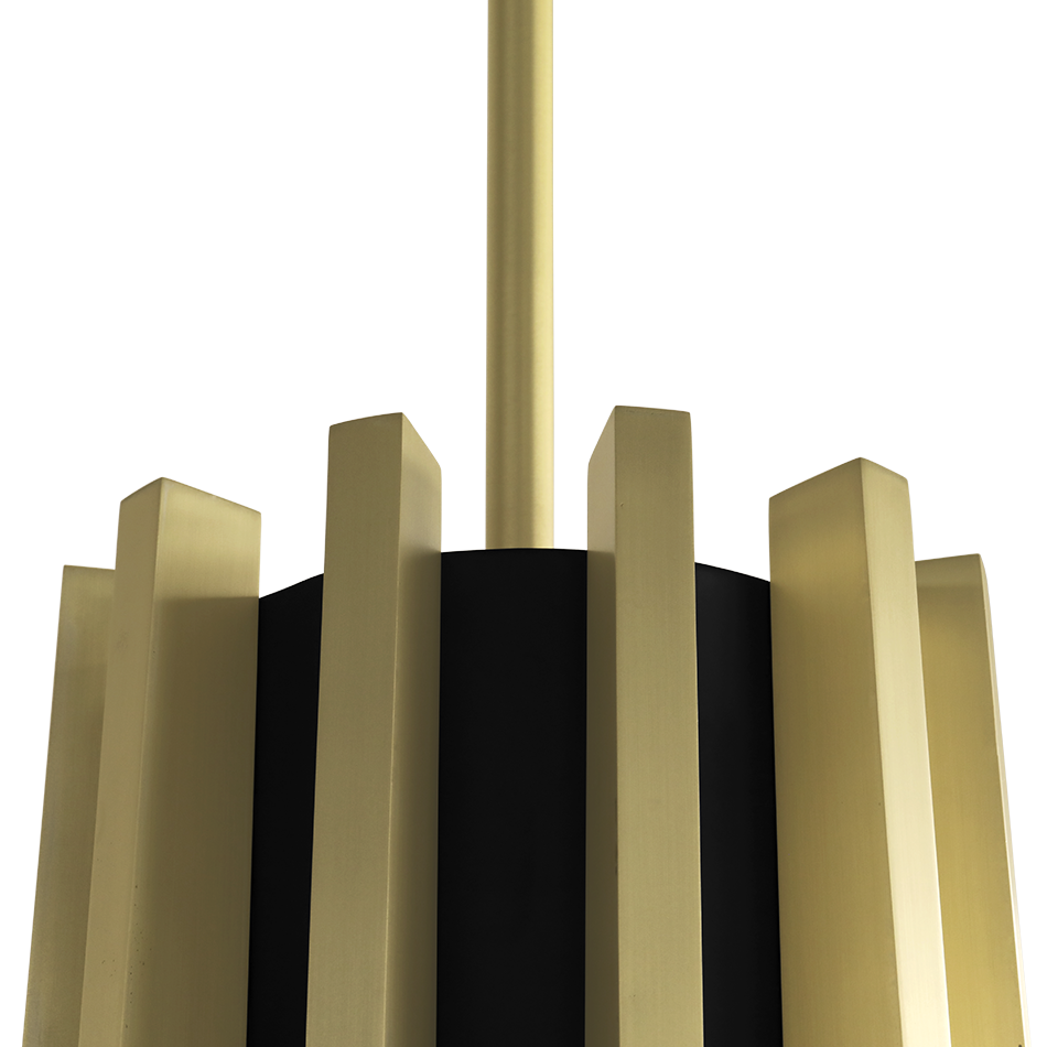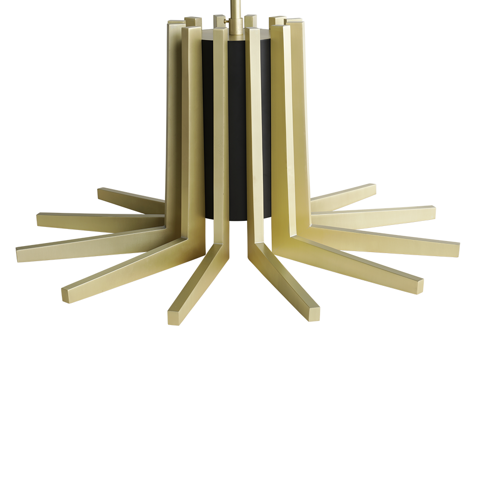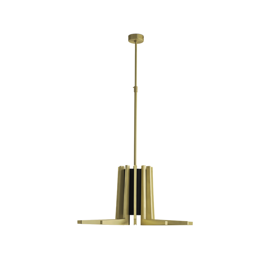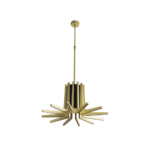 The Mina Suspension is inspired by Turin’s Palazzo del Lavoro, featuring a stylized plant design with gilded branches. More than a simple lighting design, it creates a scenographic effect with a double light system: a central one for lighting the table and a strip led under each arm of the lamp for a more scenographic effect.