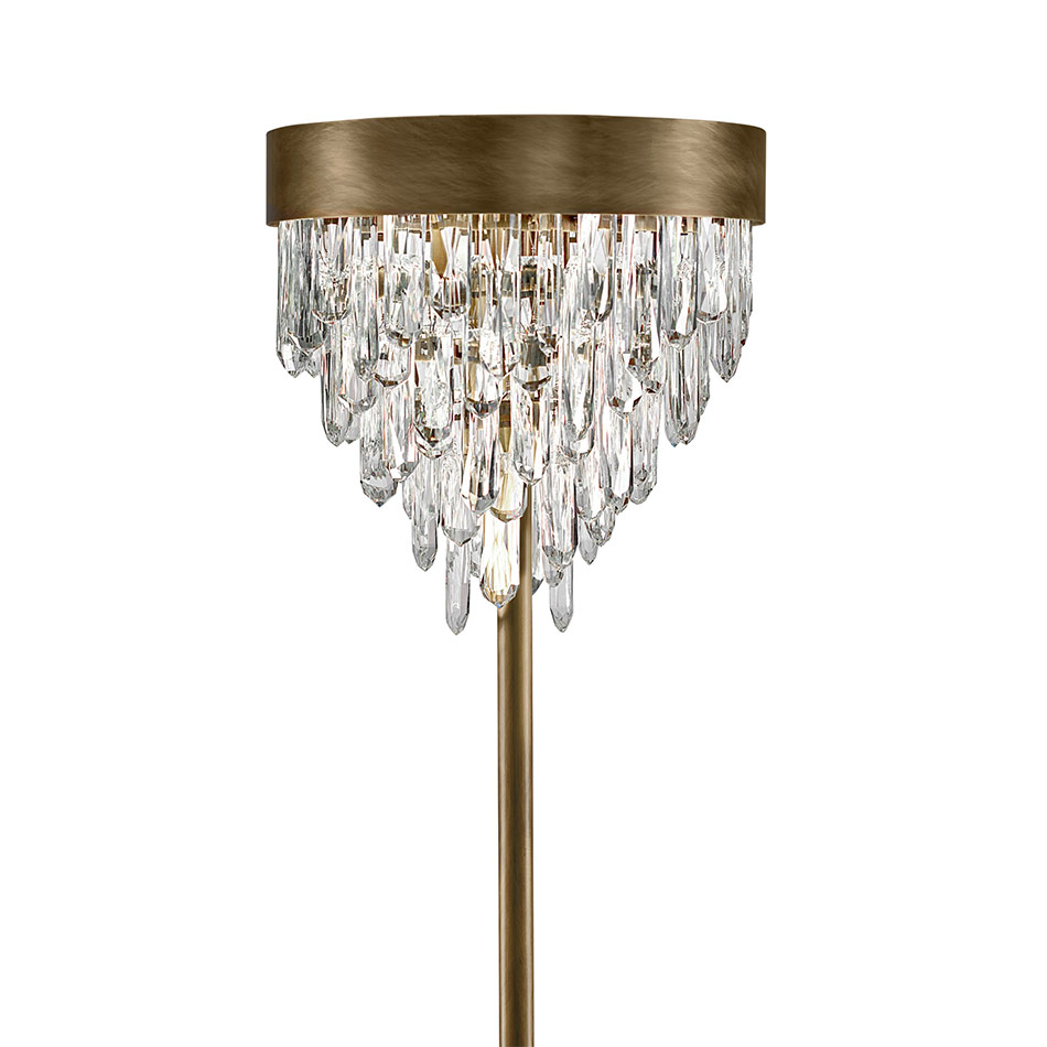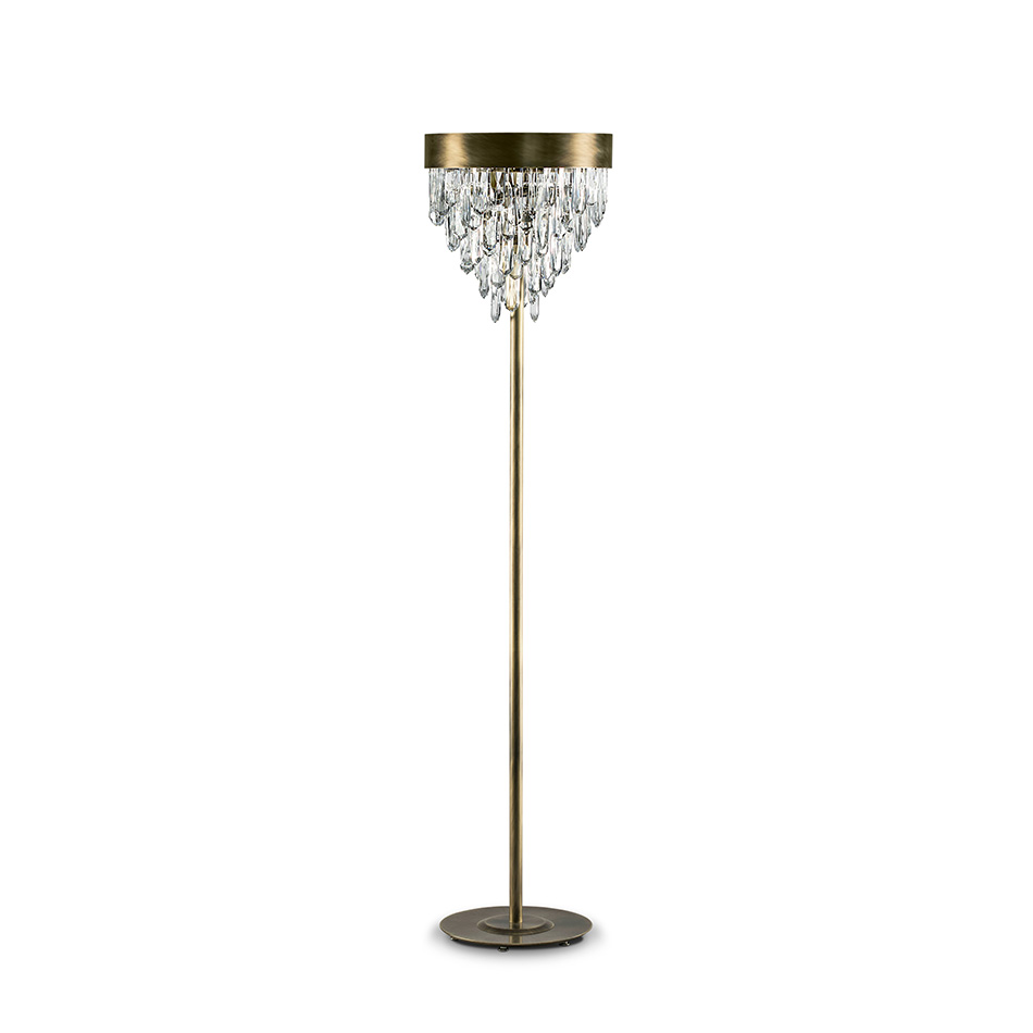The allure of Mexico’s Giant Crystal Cave was the inspiration for NAICCA Floor Light, an accent lamp that represents the legend of crystal origins. The aged brushed brass structure and the Quartz crystal diffuser merge to brighten any home decor, filling the room with a strong yet peaceful atmosphere. This brass floor light will bring a modern classic feel to your home design.