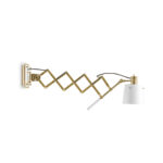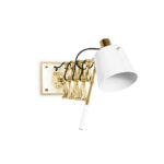 Pastorius wall lamp has an industrial chic style and features swing arms that are an American classic. Sophisticated and modern, Pastorius arm lamp complement any interior design. Its extendable arm built of brass can be adjusted into different positions and extends up to 26”. The handle made of steel with a matte black finishing gives you the possibility to adjust the lamp shade upwards or downwards. With a vintage feeling, the flexible lamp shade has matte black exterior and a matte white interior finishing. Pastorius accordion extension and flexible head make this industrial wall sconce perfect as a bedside reading lamp or as a workbench lighting.